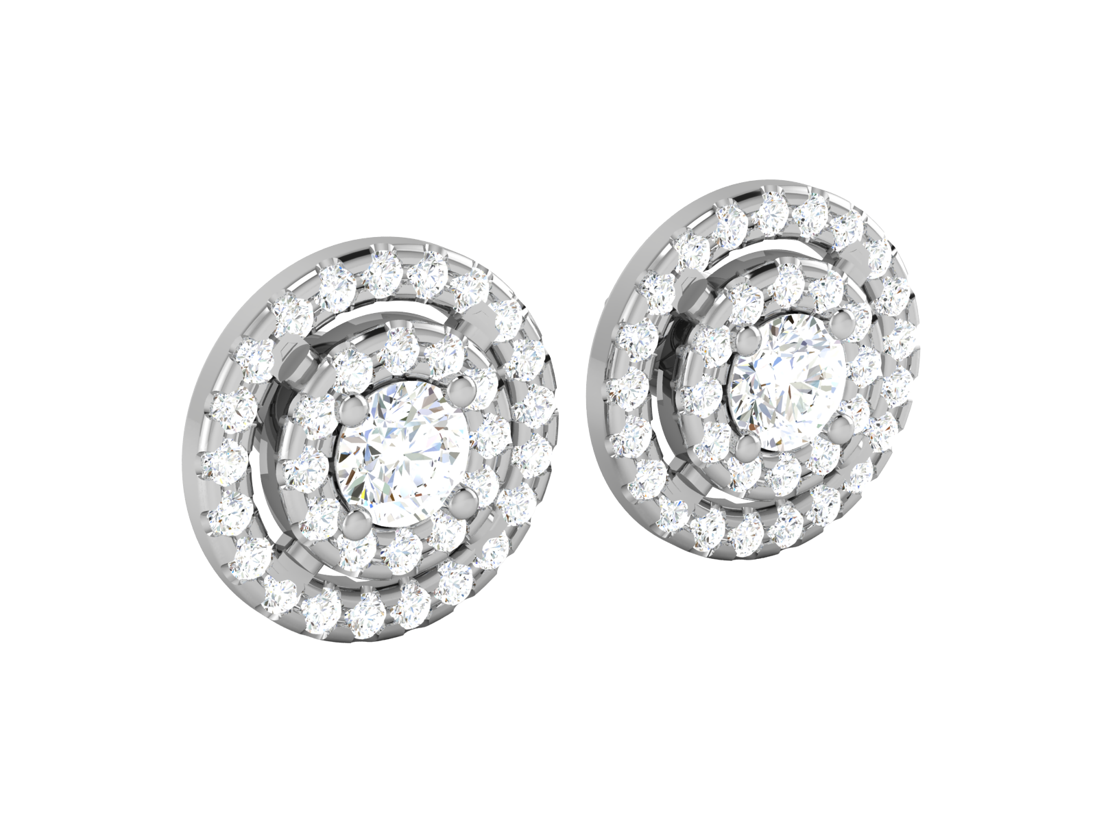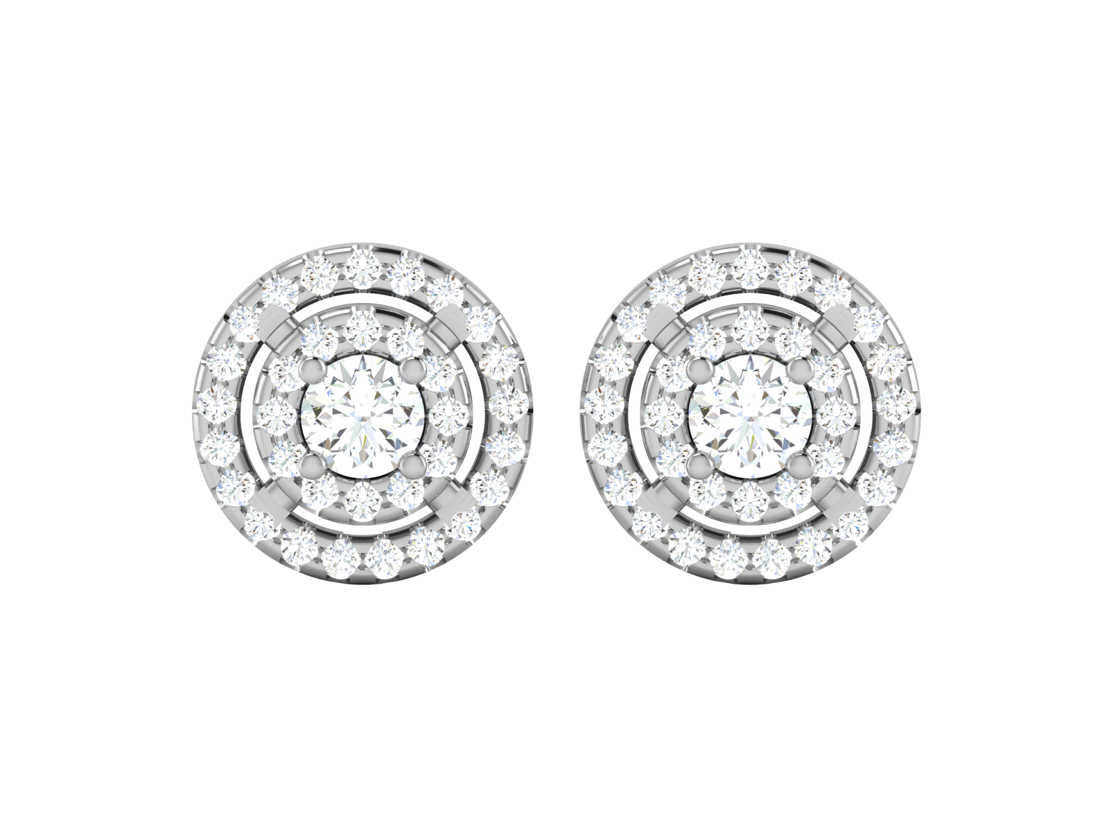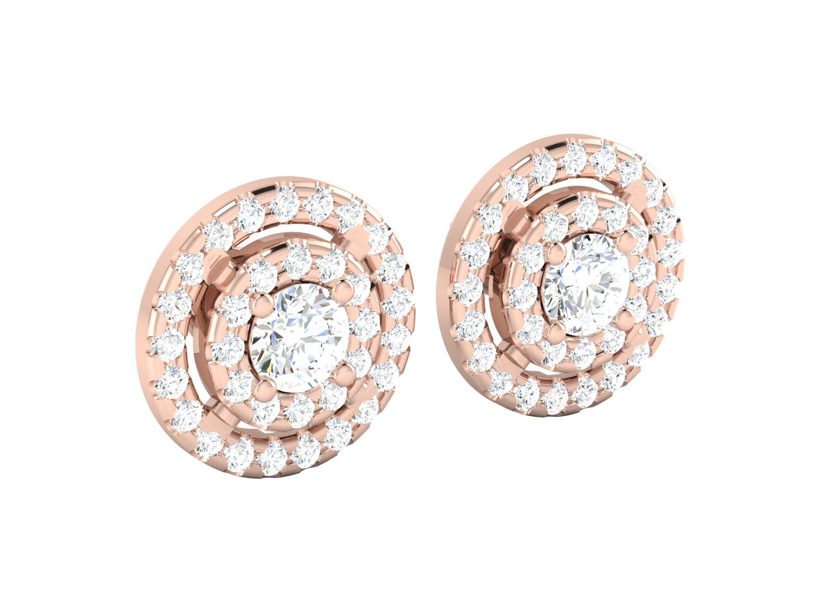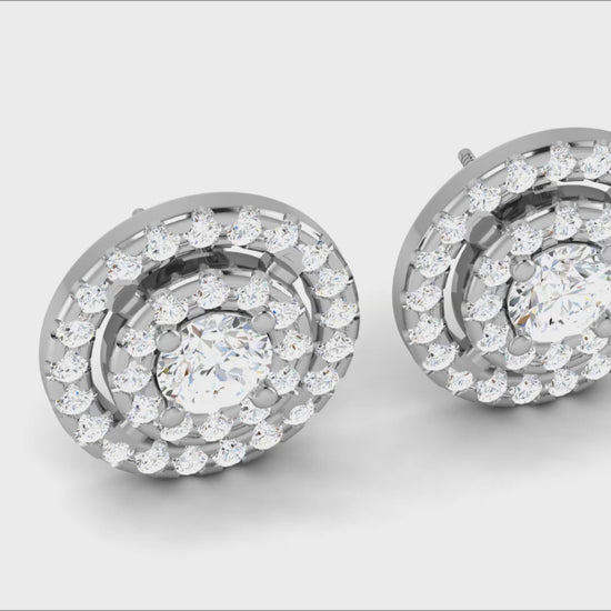 Gold Double Halo Diamond Stud Earrings - Round Brilliant Cut