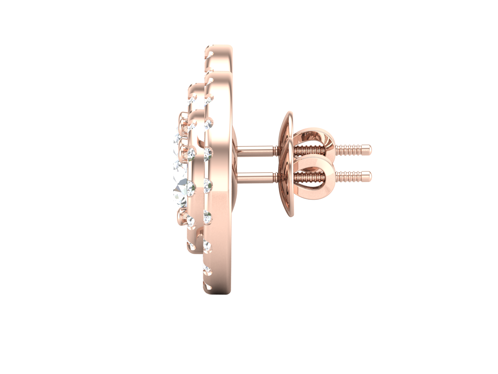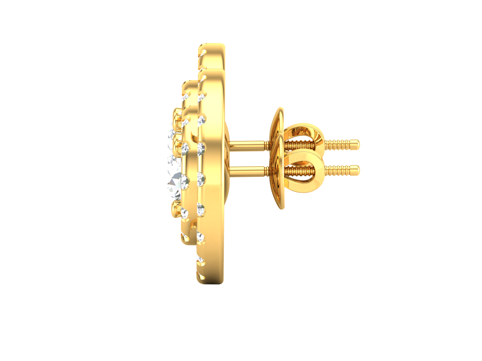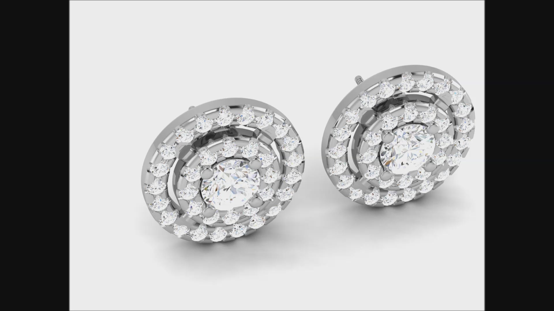 Gold Double Halo Diamond Stud Earrings - Round Brilliant Cut