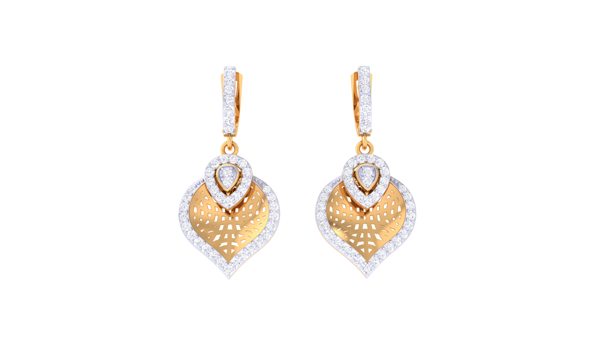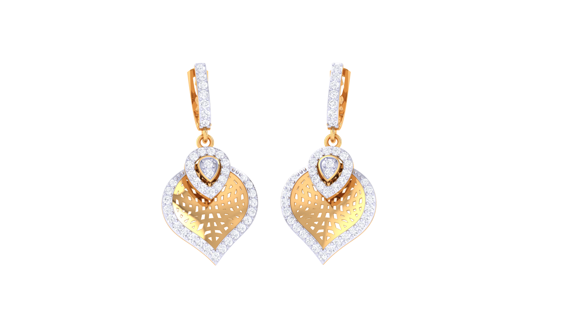 Leafy Sparkle Hoop Earrings In Yello Gold - 0.70 Ct Brilliant Round Cut Diamonds