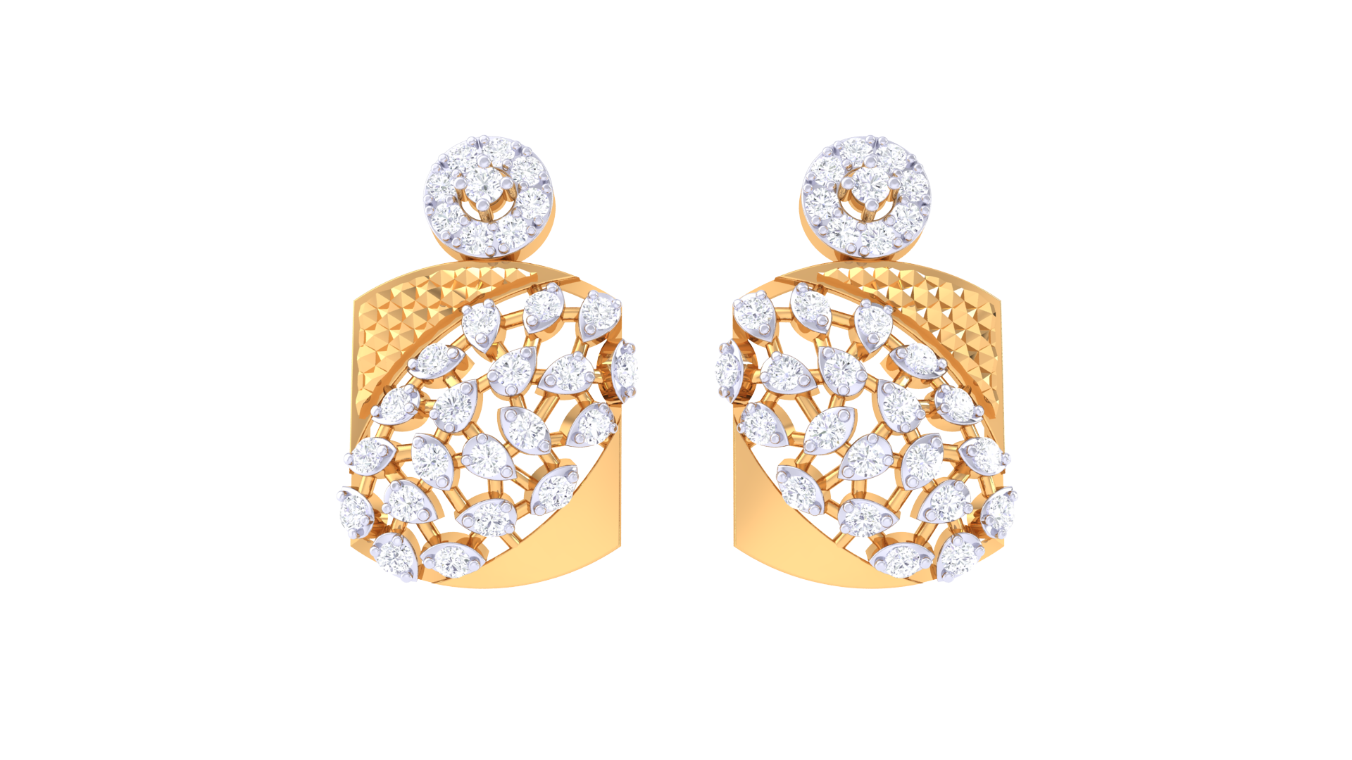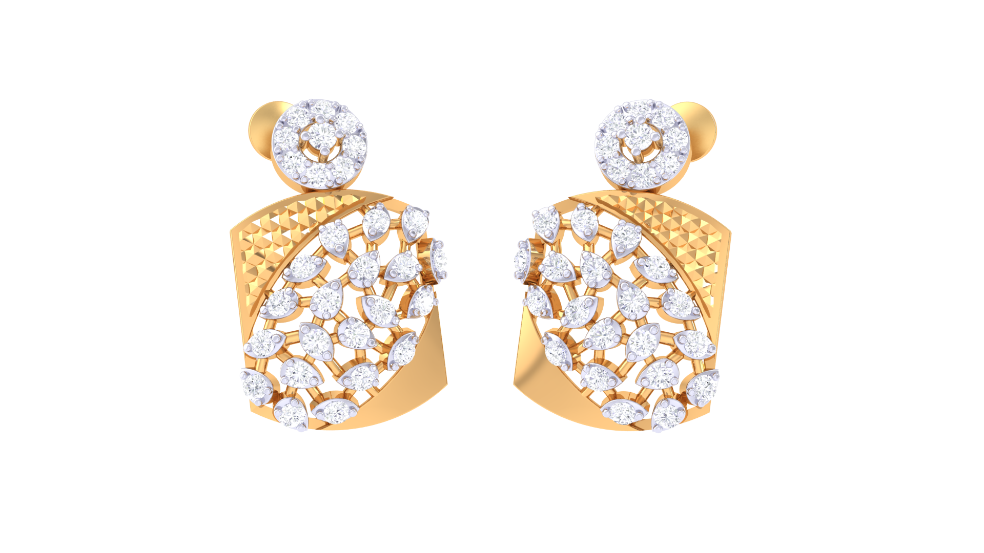 Geometric Glamour Stud Earrings In Yellow Gold - 0.46 Ct Round Diamonds