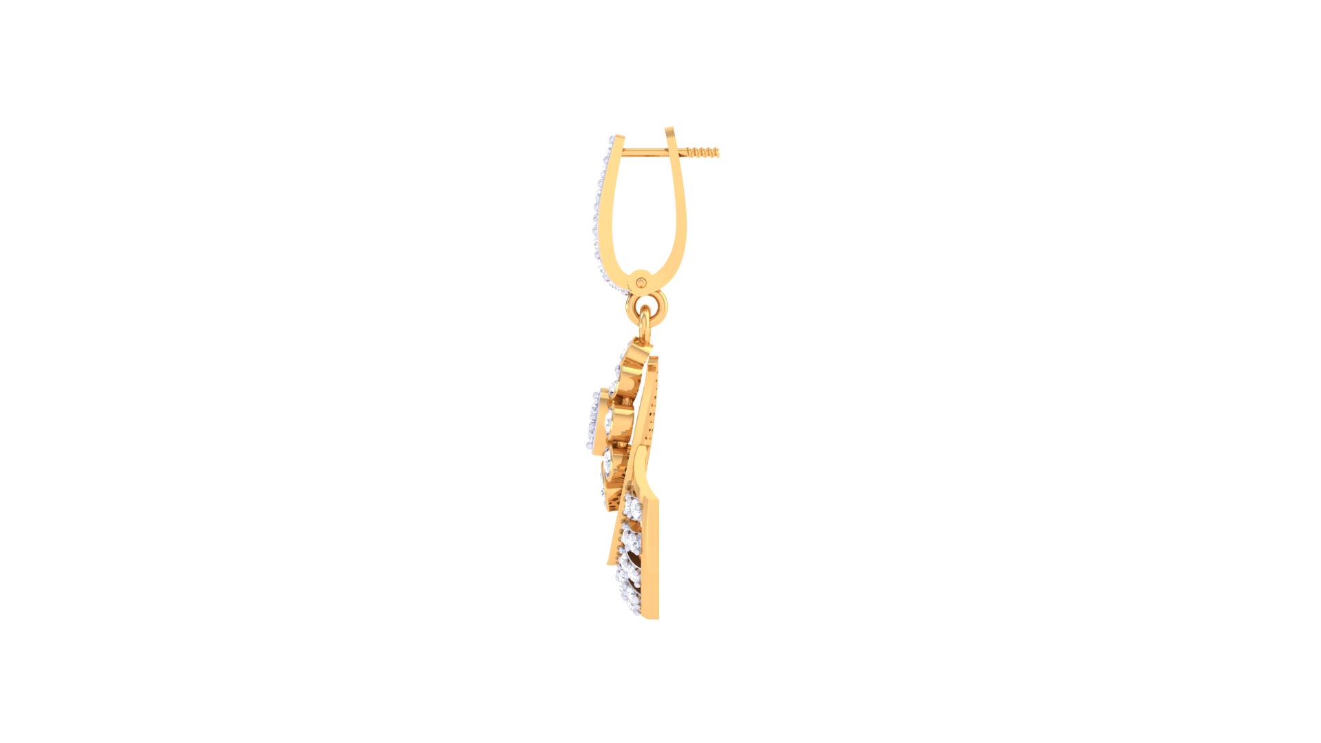 Elevate your elegance with these exquisitely crafted stud earrings, featuring 5.44 grams of radiant gold paired with 0.58 carats of delicately shaped round diamonds.