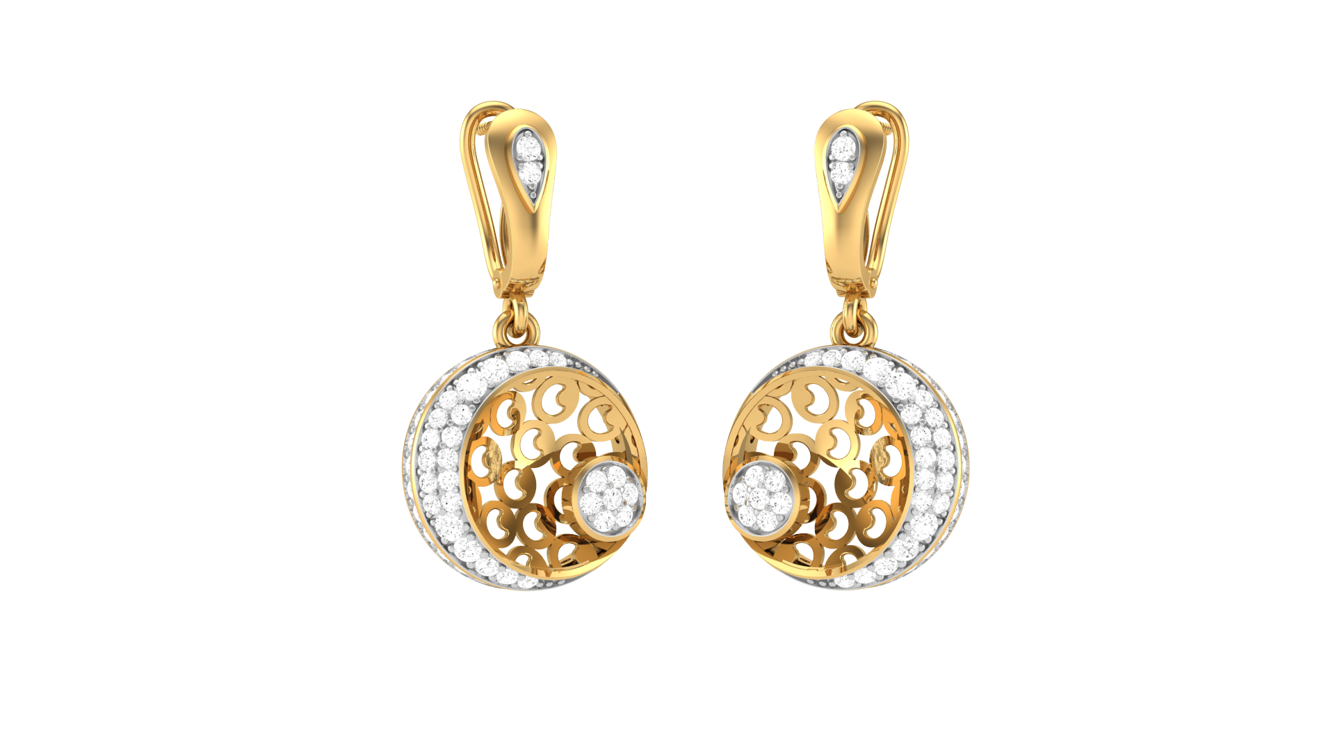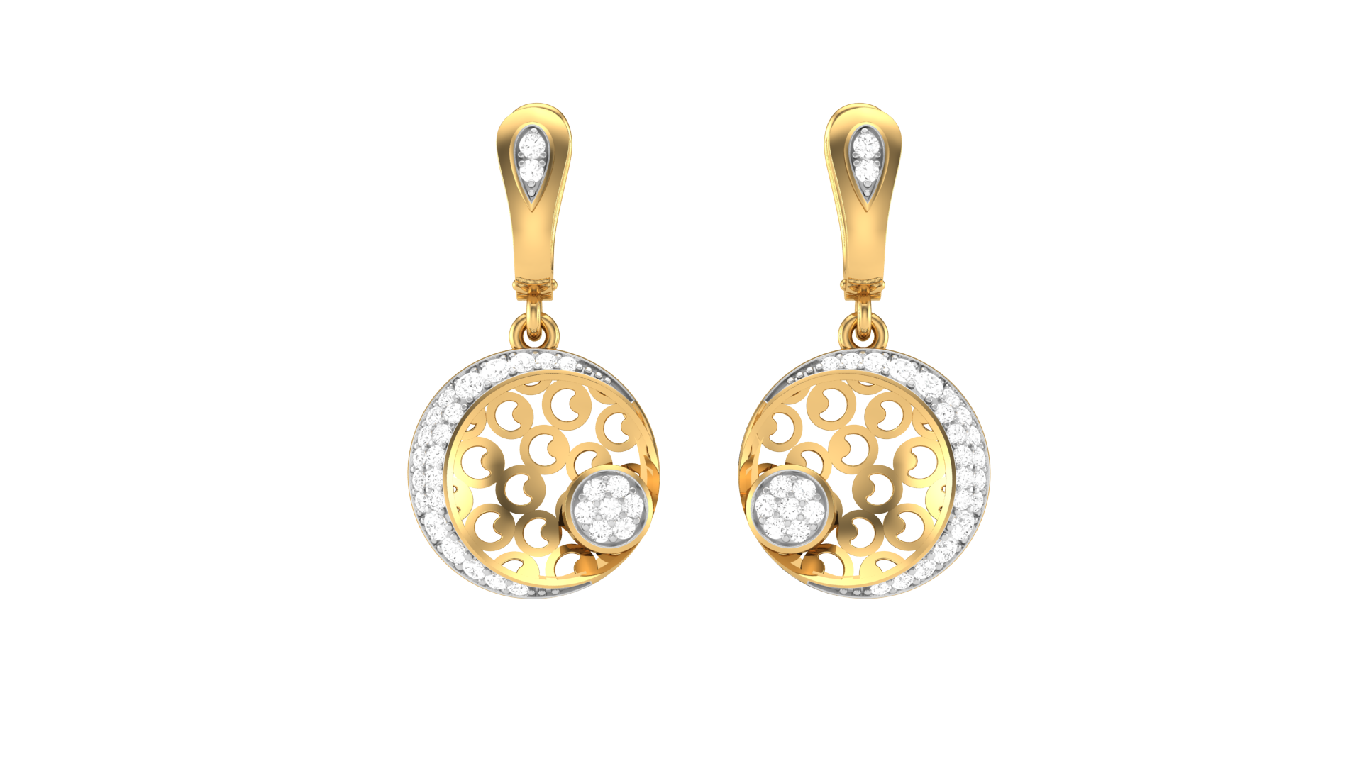 Intricate Mandala Hoop Golden Earrings - 0.79 Ct Round Cut Diamonds