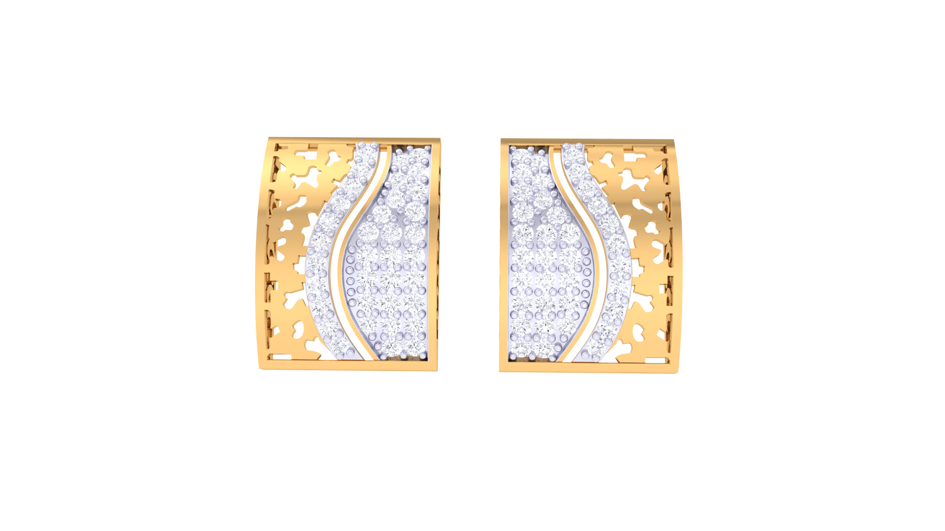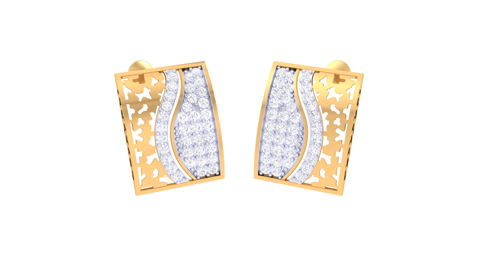 Geometric Sparkle Stud Earrings In Gold - 0.67 Ct Round Cut Diamonds