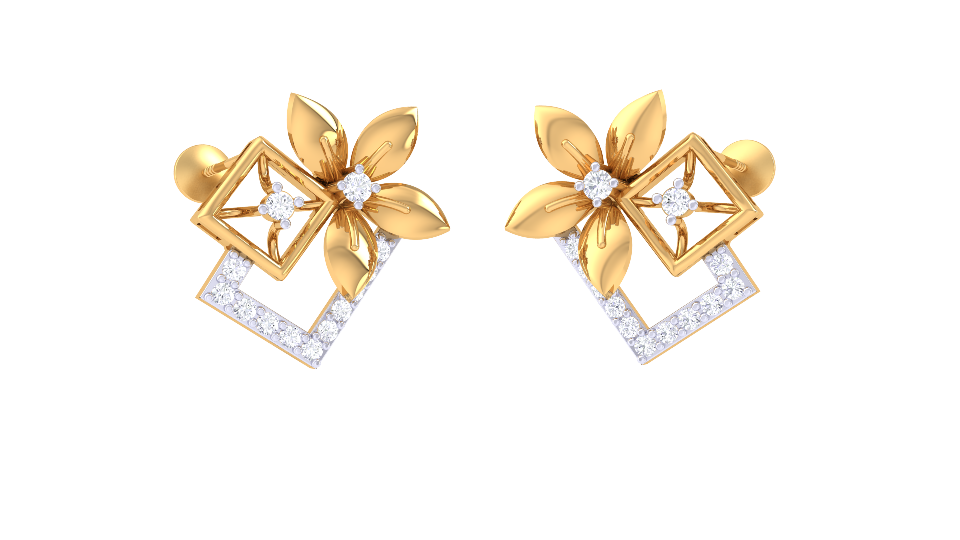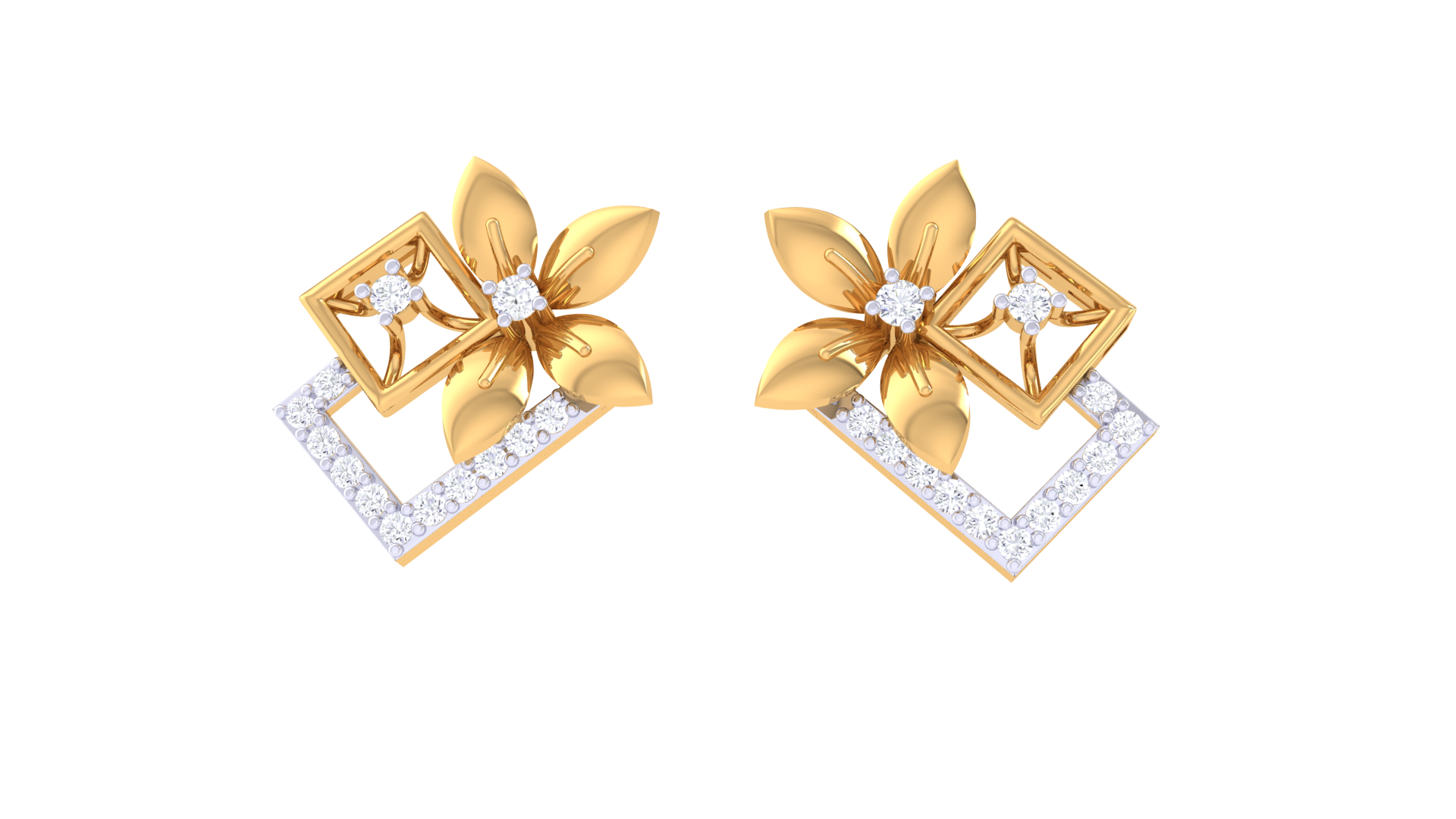 Duet Flora Frame Earrings In Yellow Gold - 0.26 Ct Sparkling Round Cut Dimonds