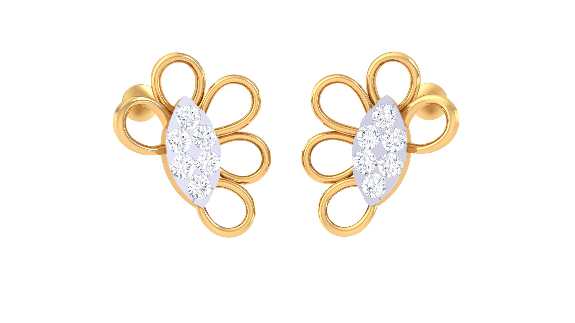 0.48 Ct - Floral Arc Diamond Stud Earrings