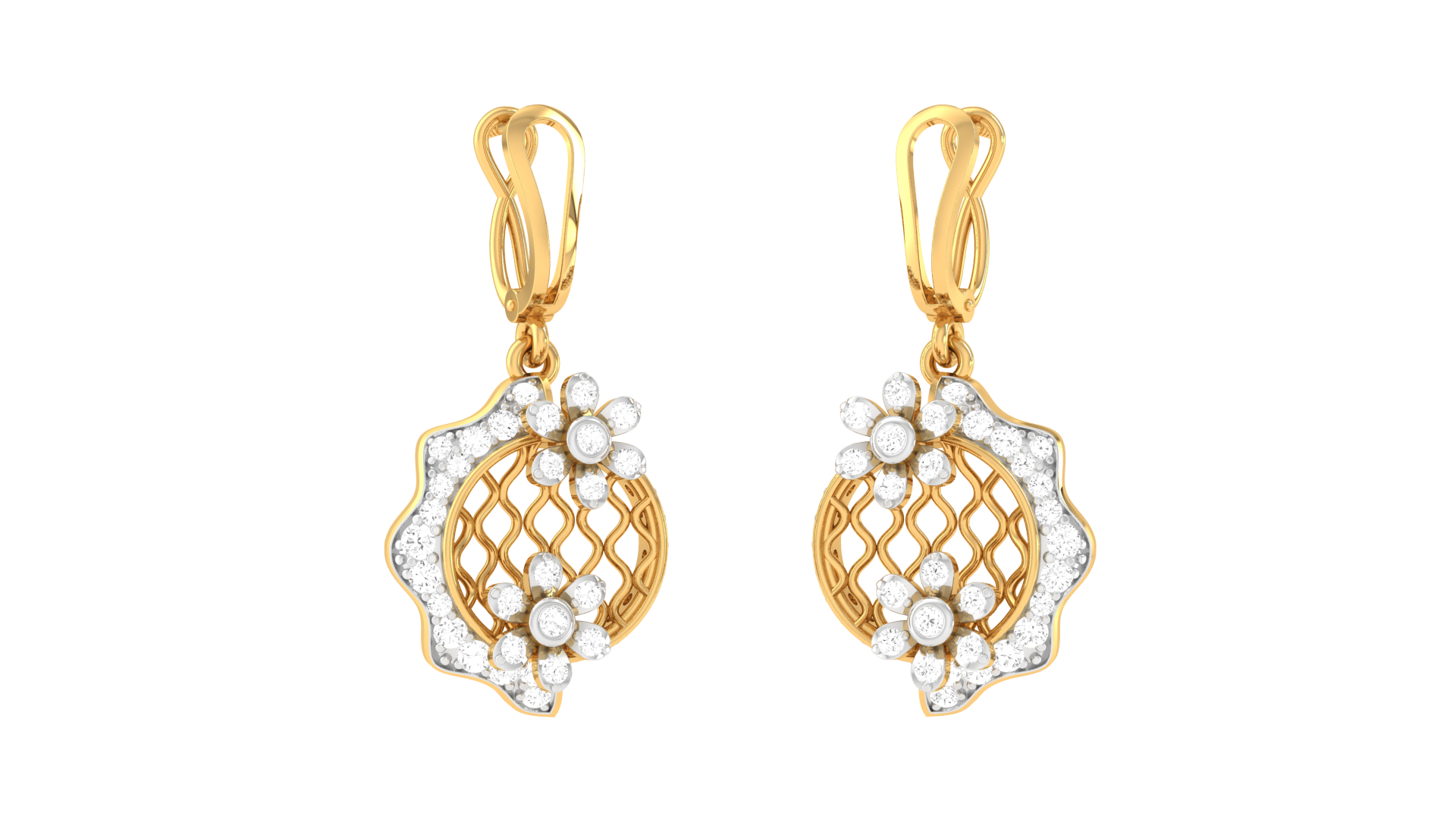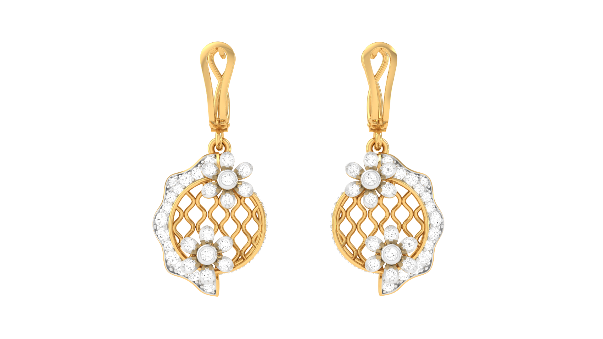 Luminous Floral Loop Hoop Earrings In Gold - 0.66 Ct Round Cut Diamonds