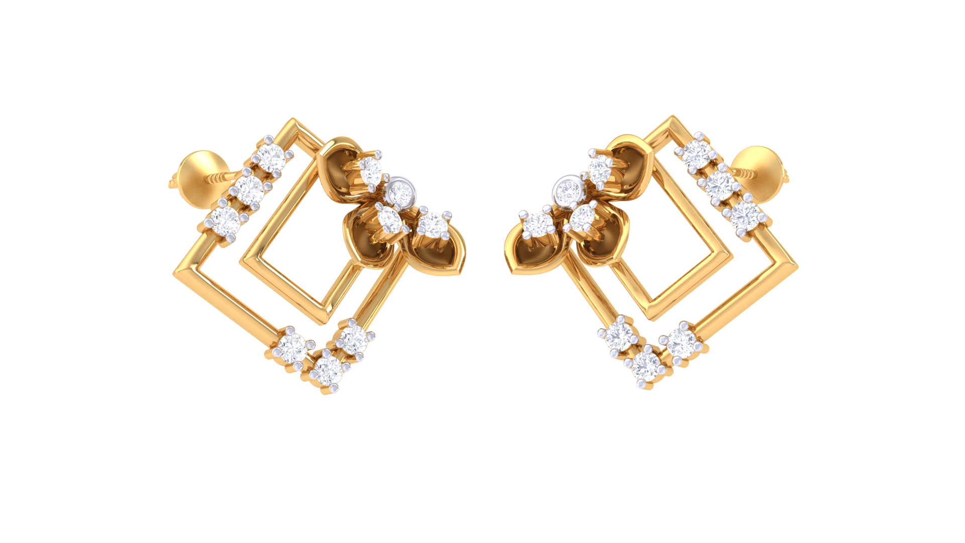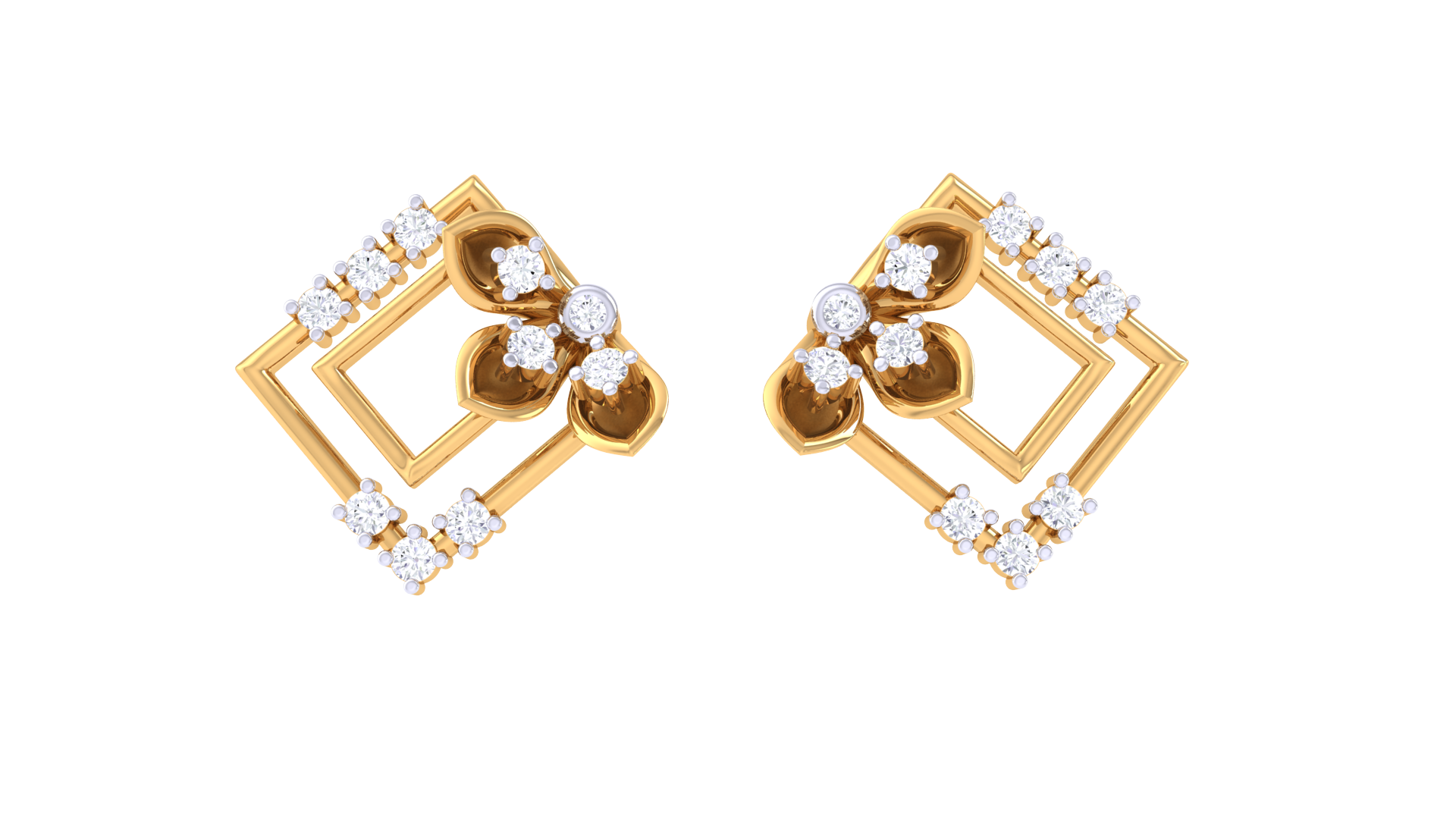 Flora Square Frame Studs Golden Earrings - 0.24 Ct Rounds Diamonds