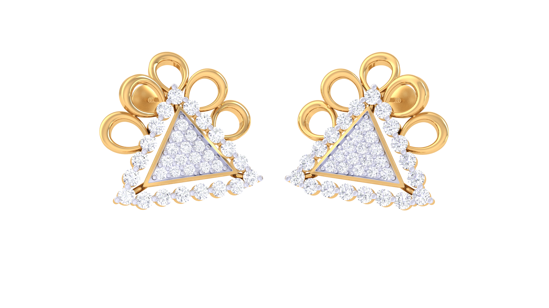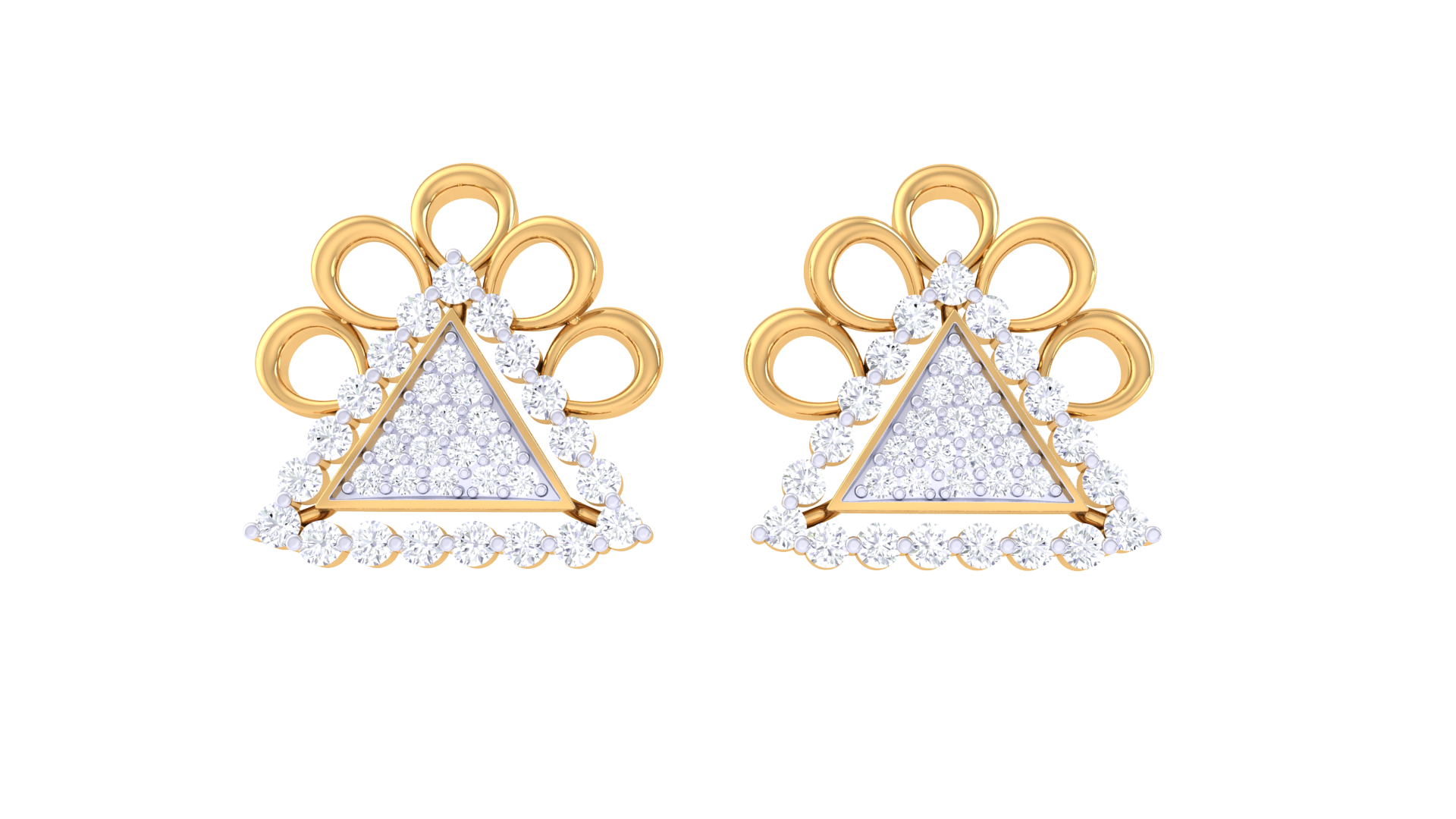 Pearl Crown Trangle Stud Earrings In Yellow Gold - 0.72 Ct Sparkling Diamonds