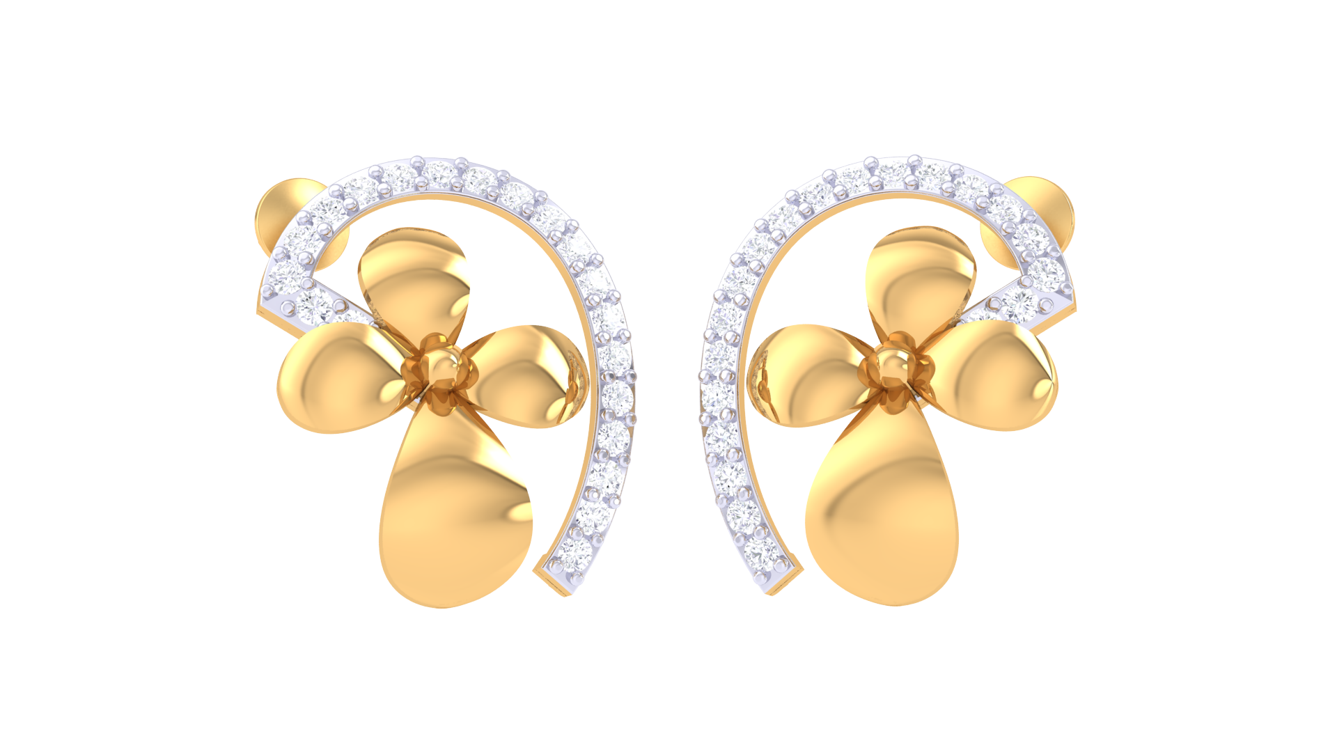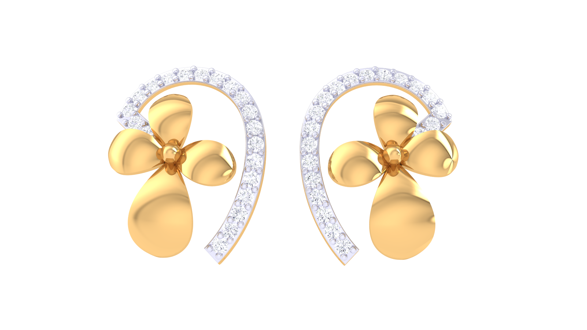 Floral Golden Petal Diamond Stud Earrings - 0.33 Ct