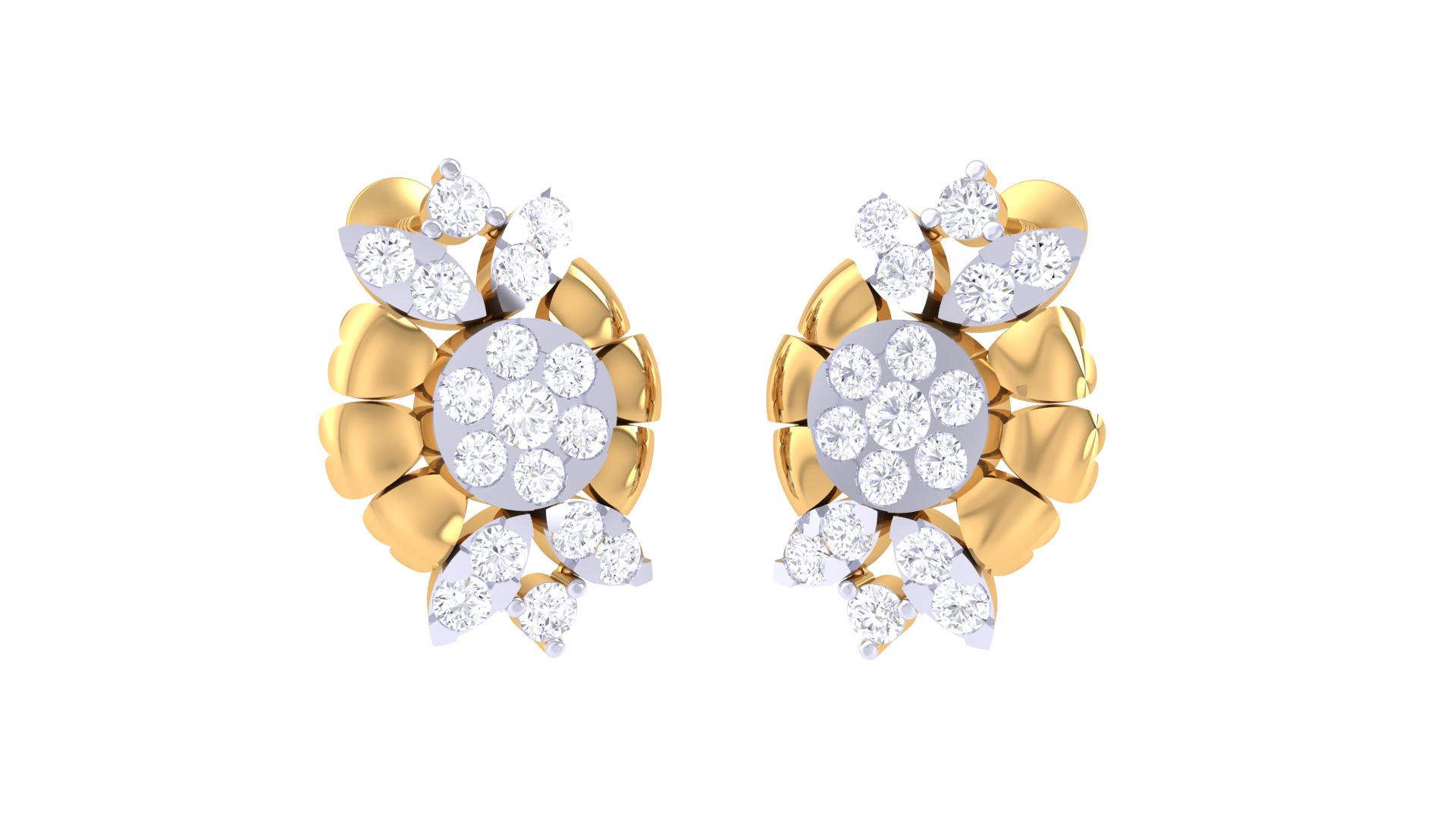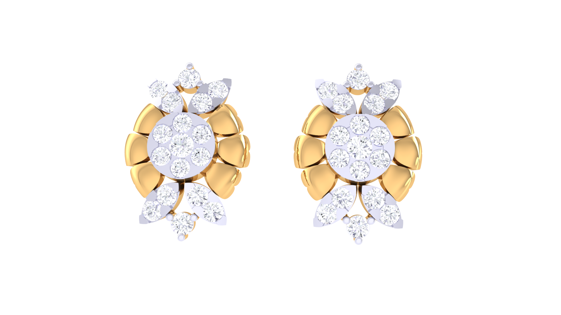 Sunbrust Patel Stud Earrings In Yellow Gold - 0.74 Ct Sparkling Round Diamonds Cluster