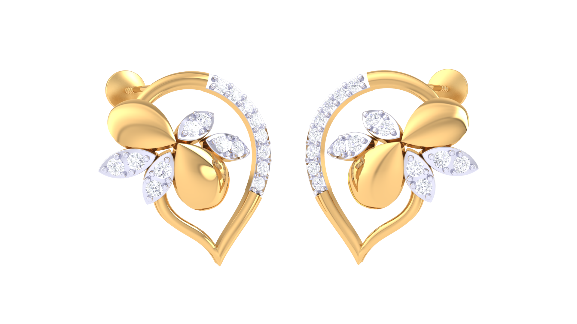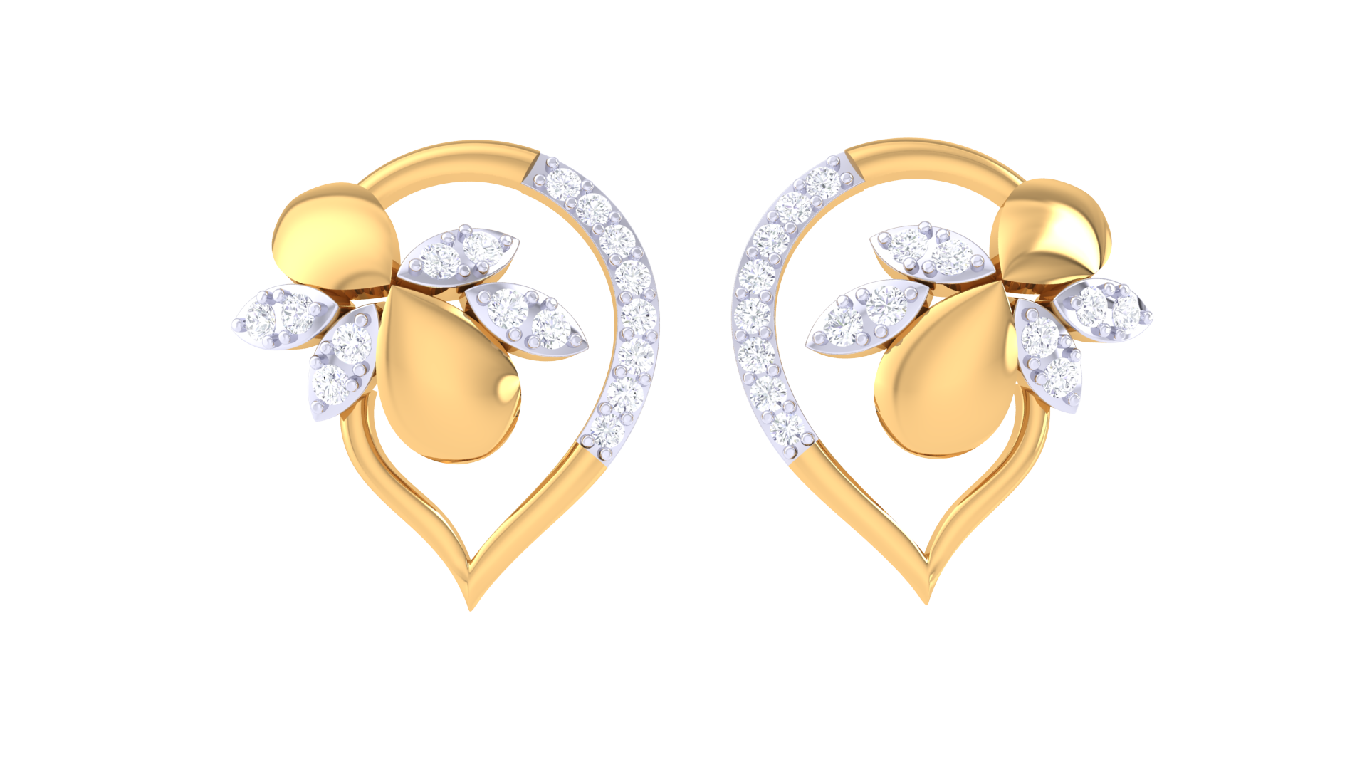 Encircled Heart Studs Earrings In Yellow Gold - 0.29 Ct Sparkling Round Cut Diamonds
