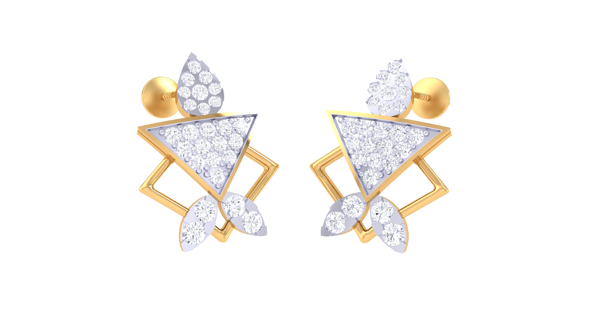 Trigon Dangle Earrings With Gold and Diamond Stud -0.57 Ct
