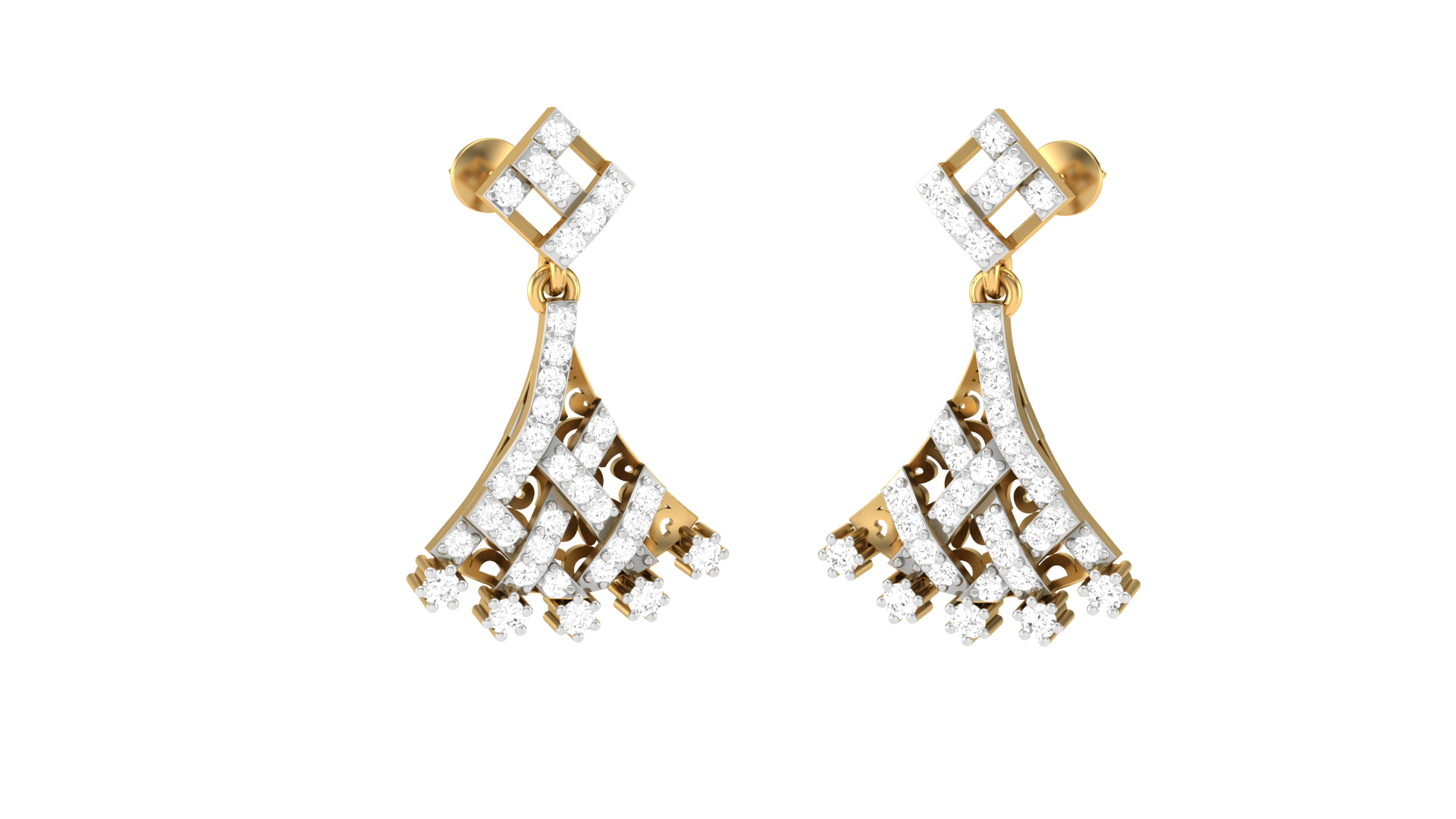 Deco Cascade Drop Earrings In Yellow Gold - 0.51 Ct Sparkling Round Diamonds