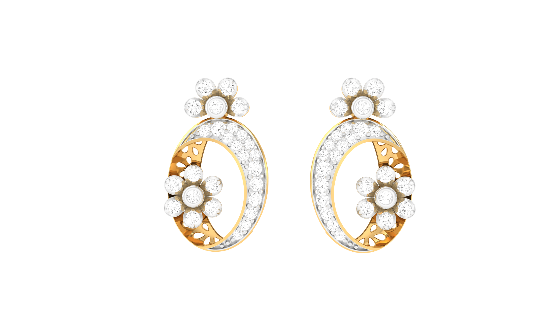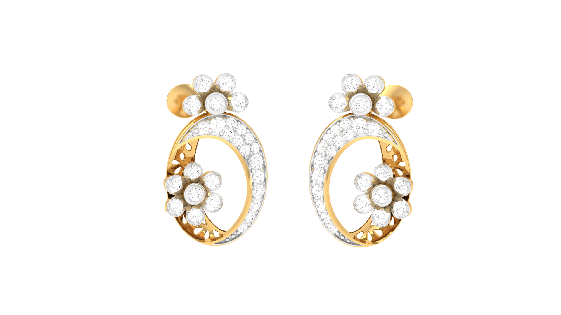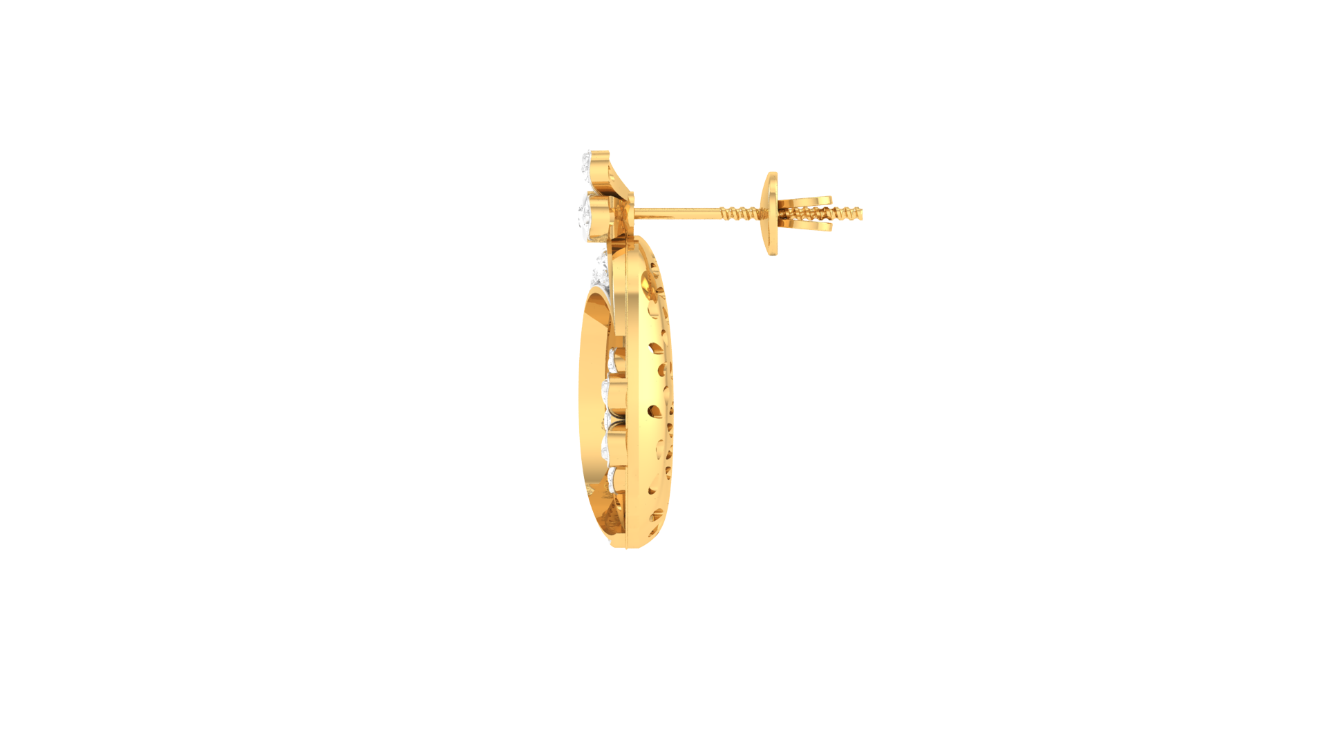 Fleuron Flroal With 0.36 Ct Round Cut Diamonds - Fancy Ovel Shaped Golden Drop Earrings