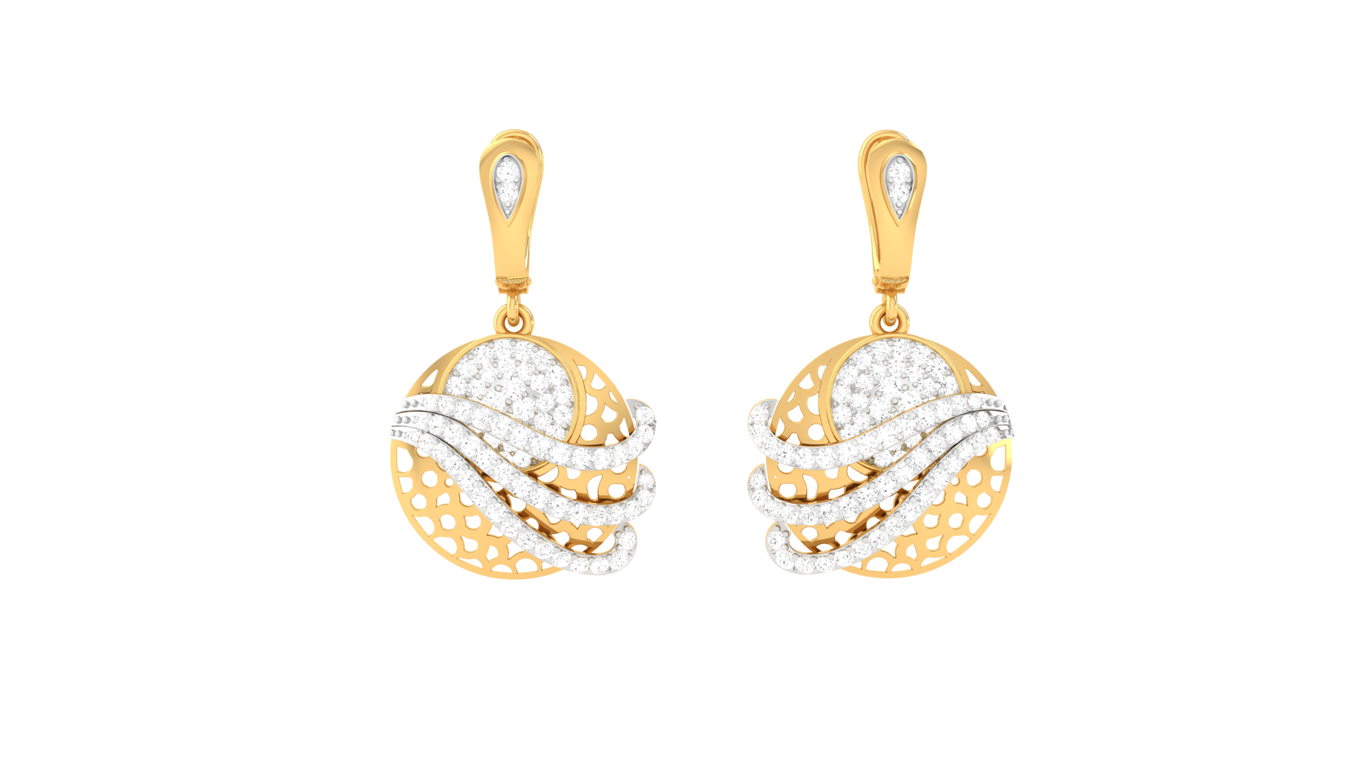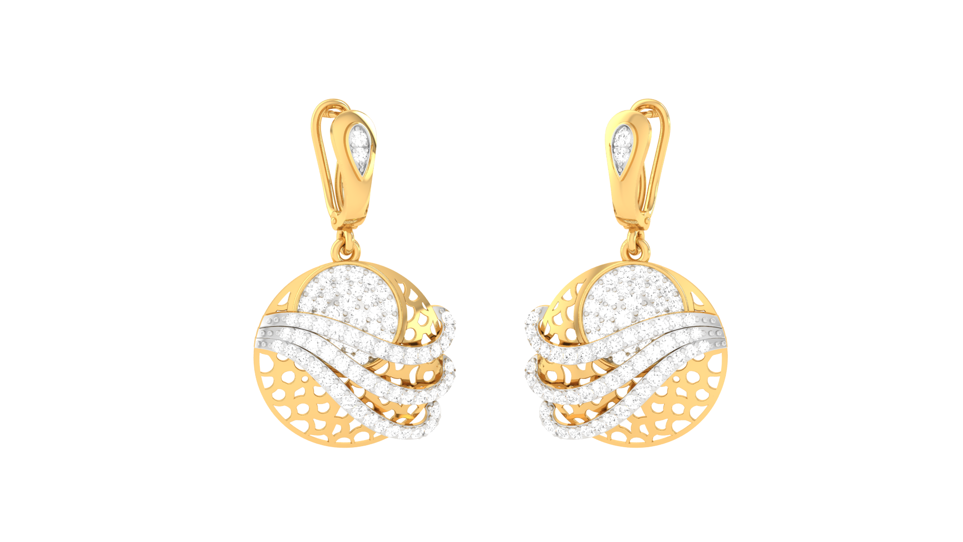 Wave Orbit Hoop Earrings In Yellow Gold - 1.19 Ct Round Shaped Diamonds