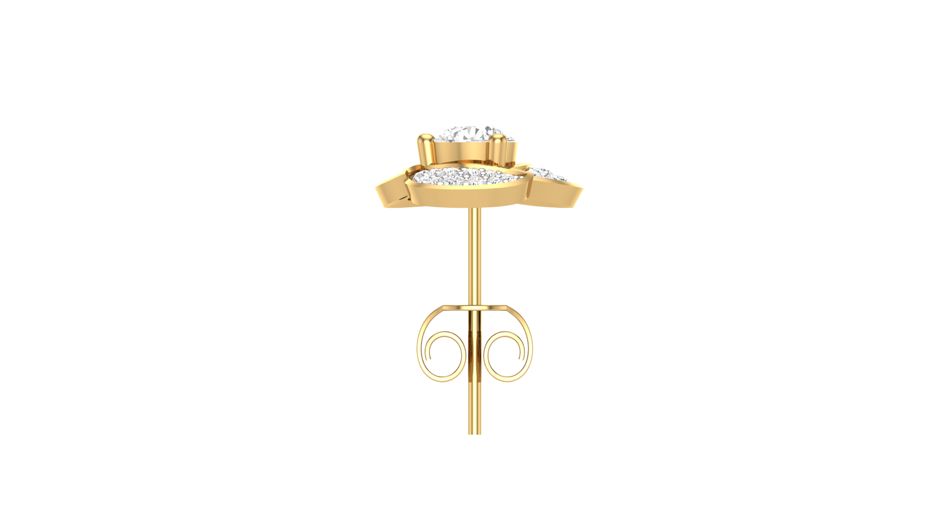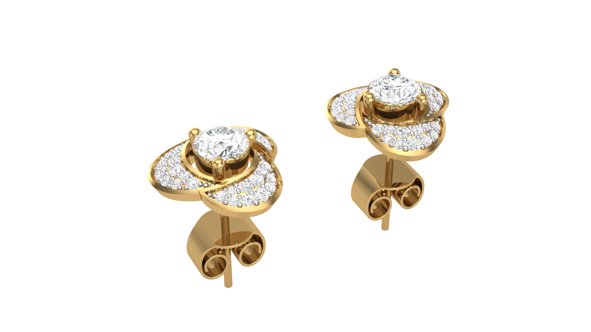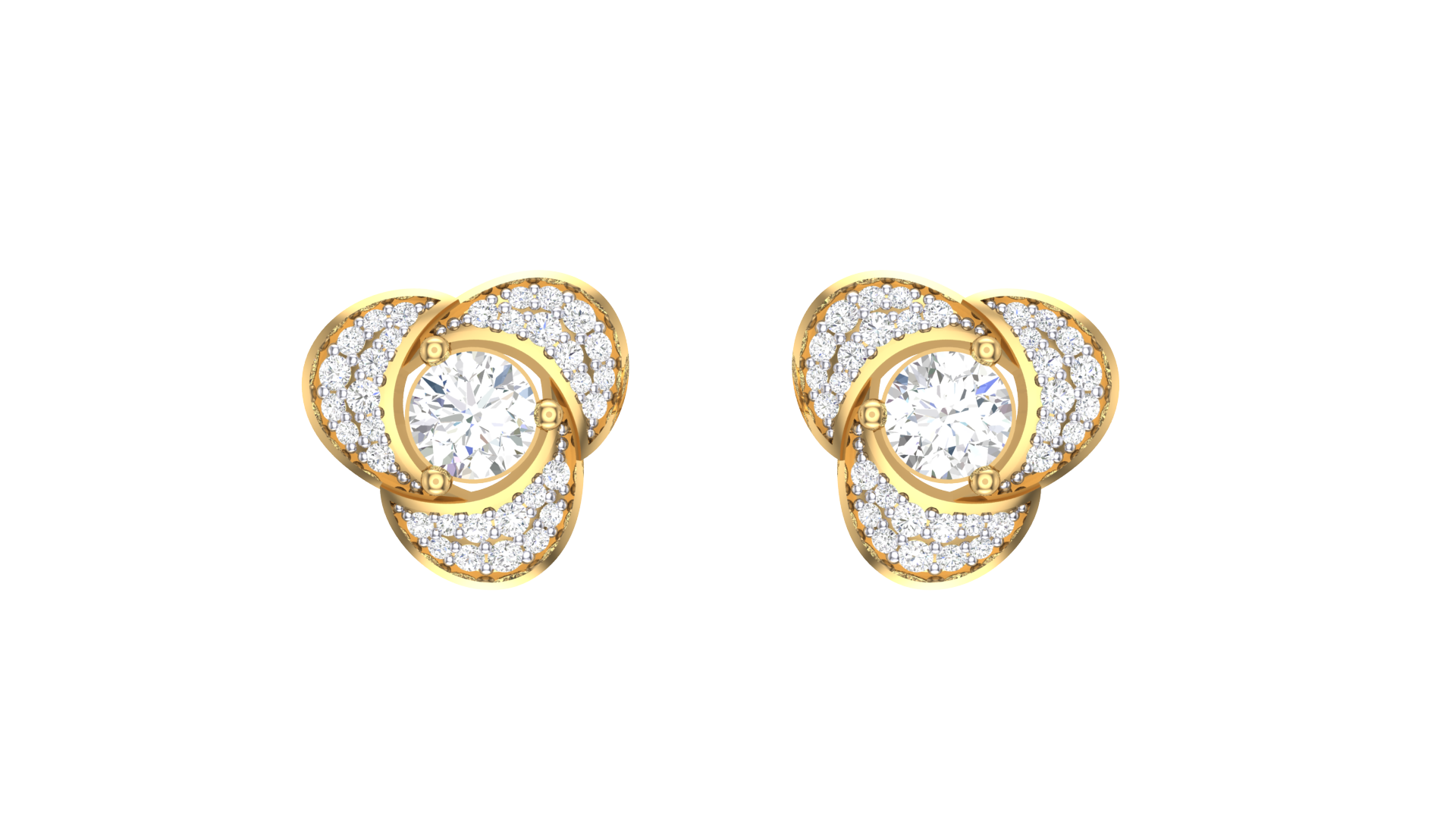 Triple Petal Diamond Stud Earrings In Gold - 1.32 Ct
