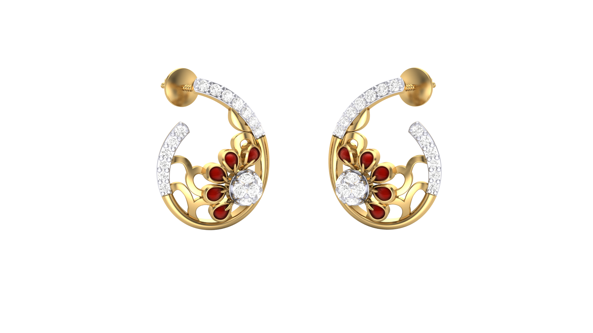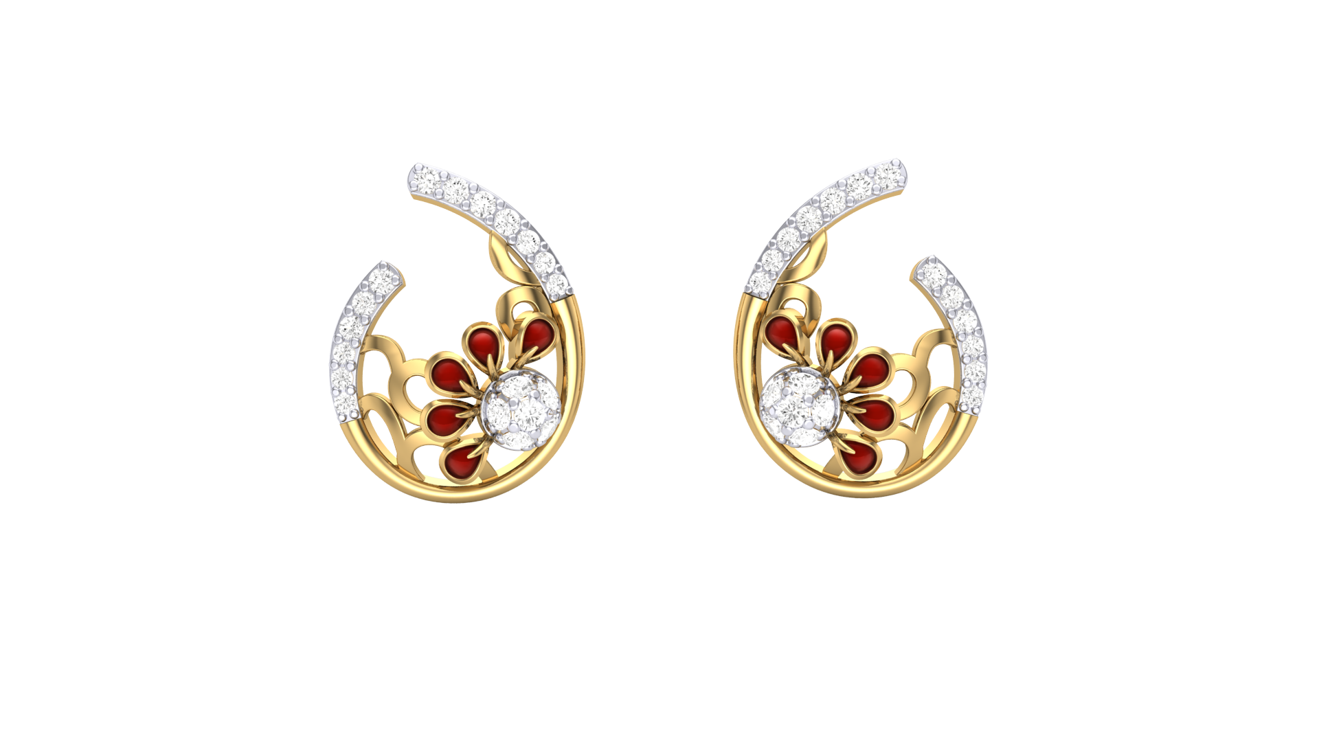Rose Petal Stud Earrings - 0.26 Sparkling Round Diamons In Yellow Gold