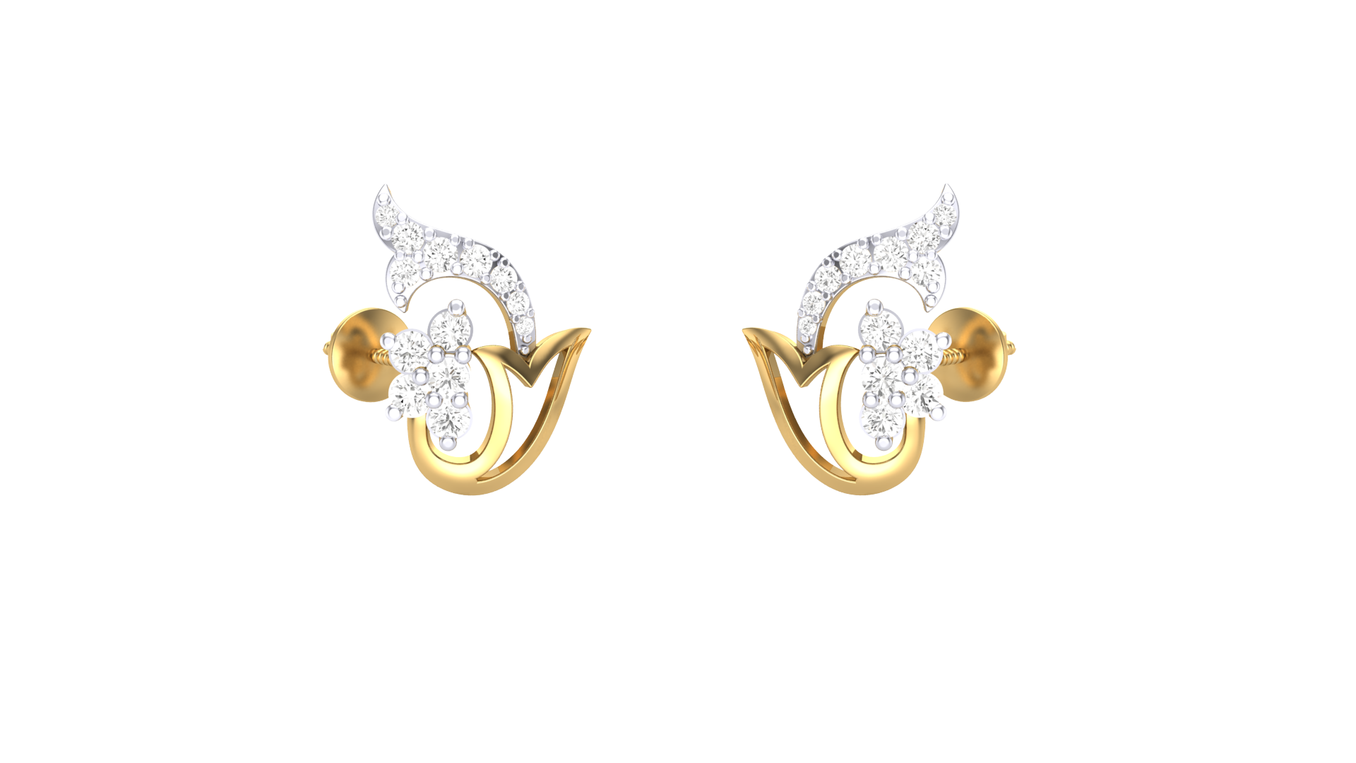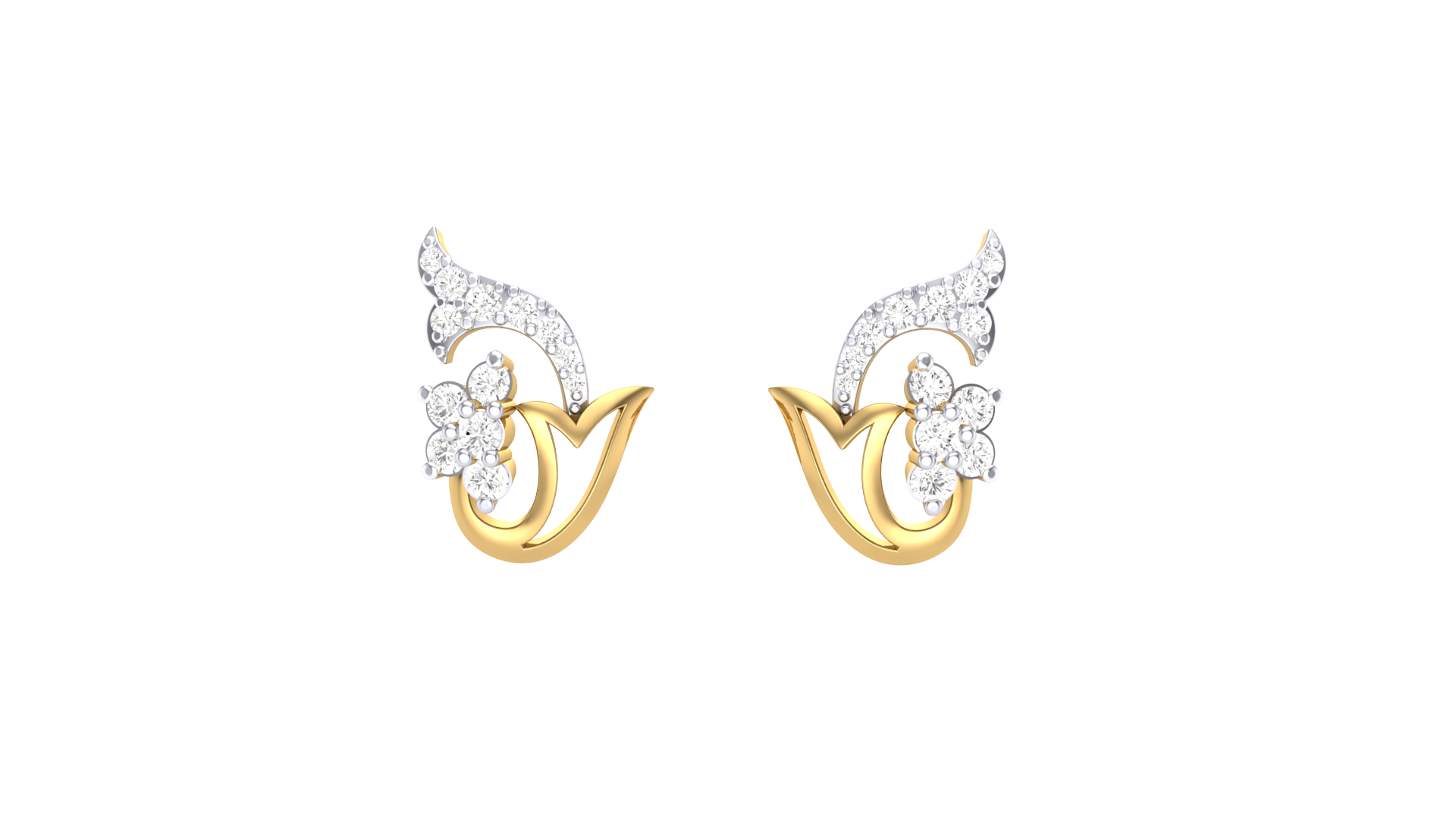 Petal and Wings Studs Earrings In Yellow Gold - 0.39 Ct Round Diamons