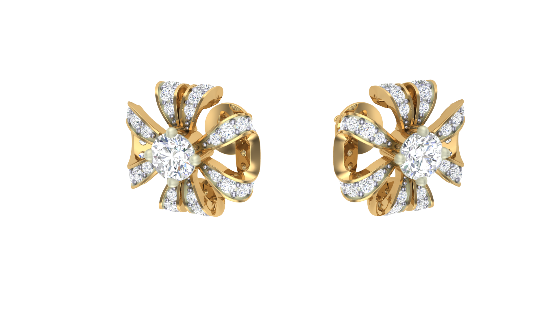 Floral Sparkle Stud Earrings In Gold - 0.49 Ct Round Cut Diamonds