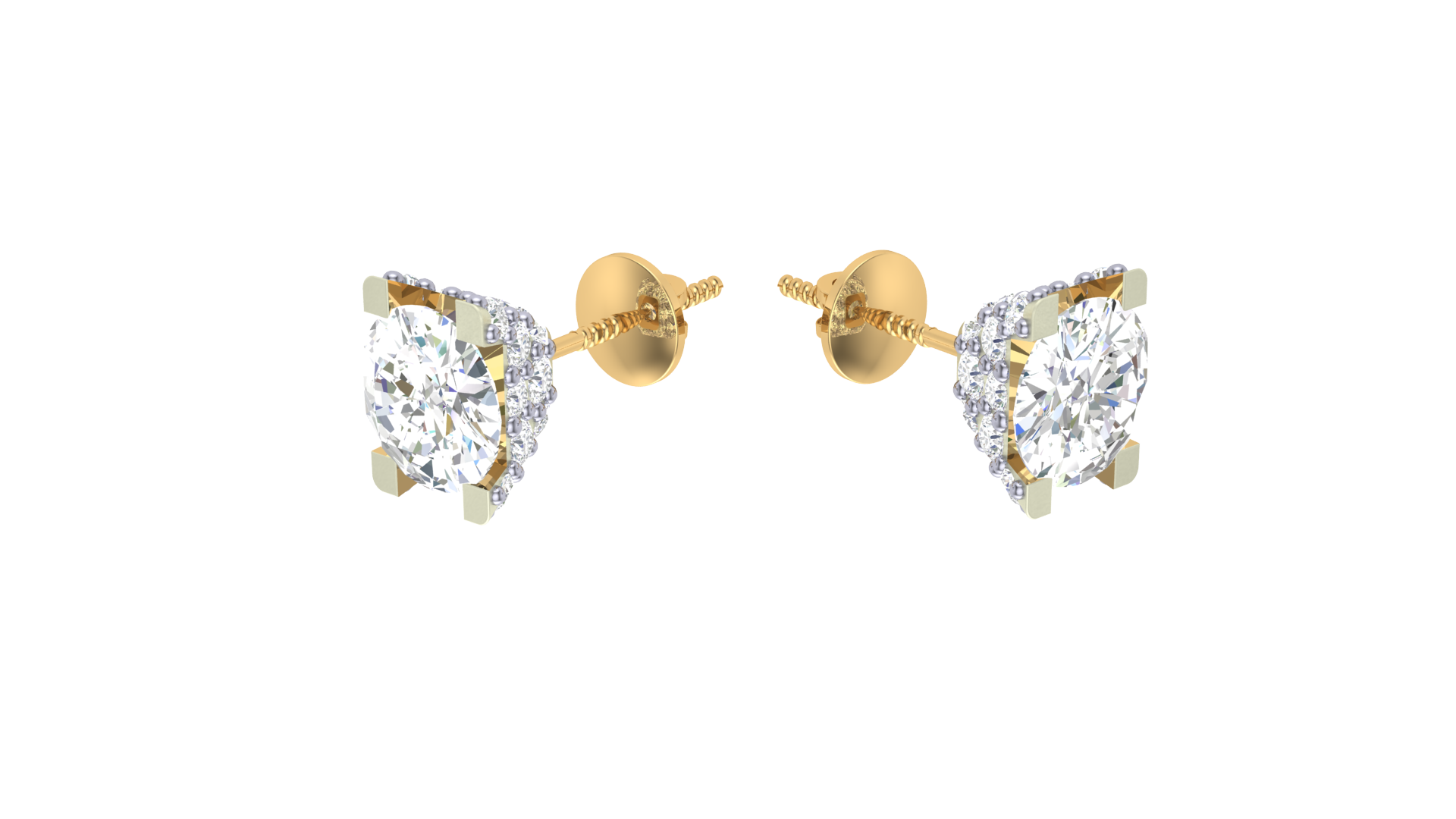 Iconique Classic Solitaire Yellow Gold Stud Earrings - 0.49 Ct Round Cut Diamonds