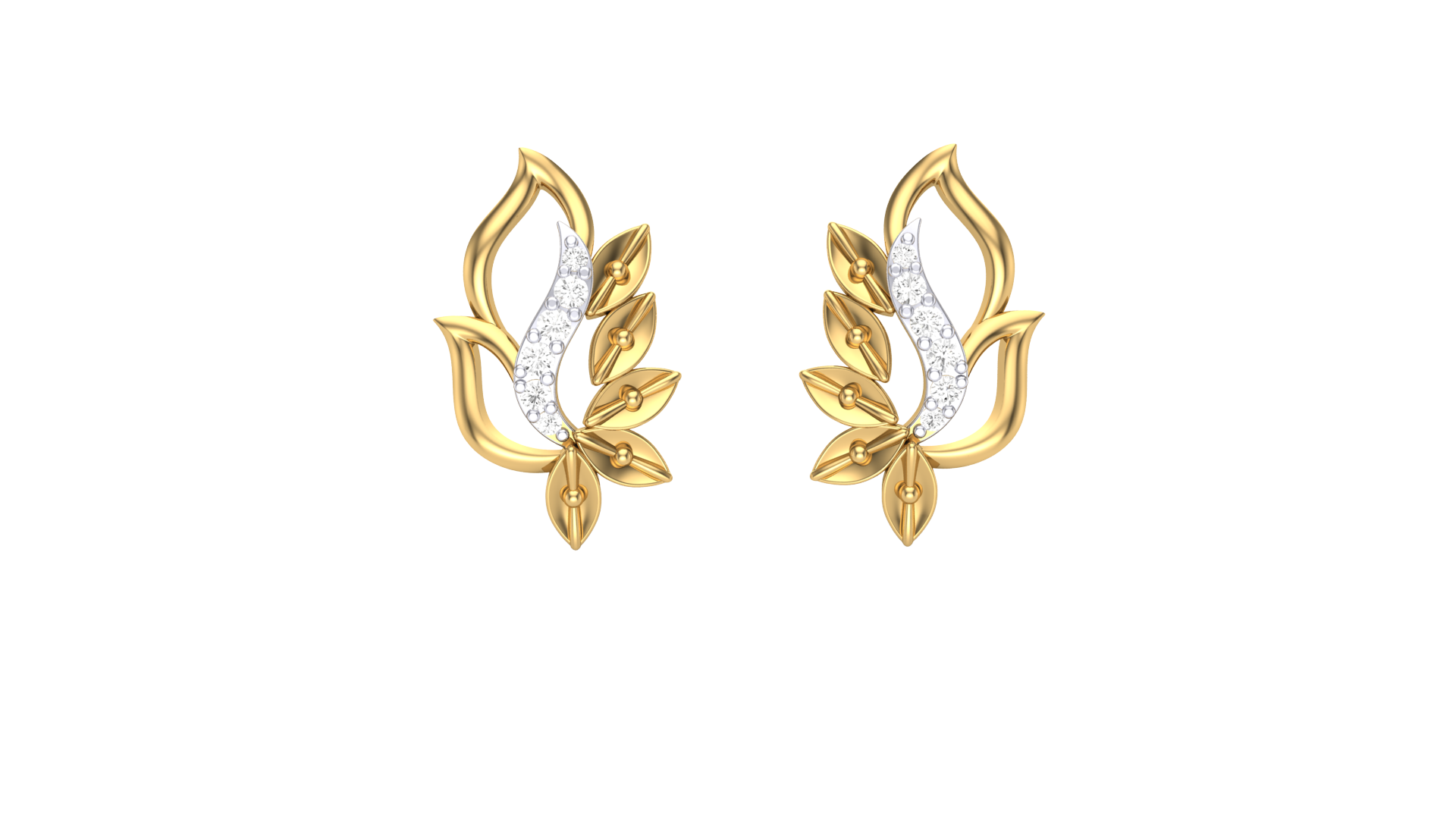 Petal Sway Stud Earrings In Gold - 0.06 Ct Round Diamonds