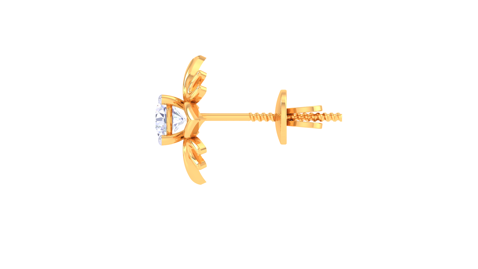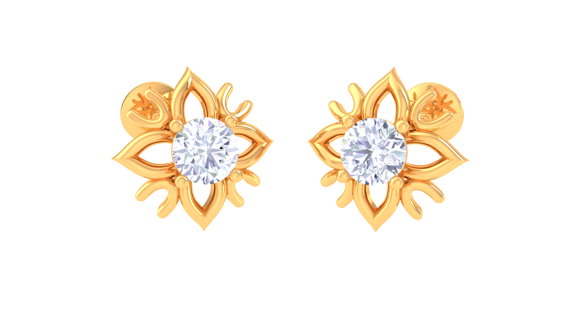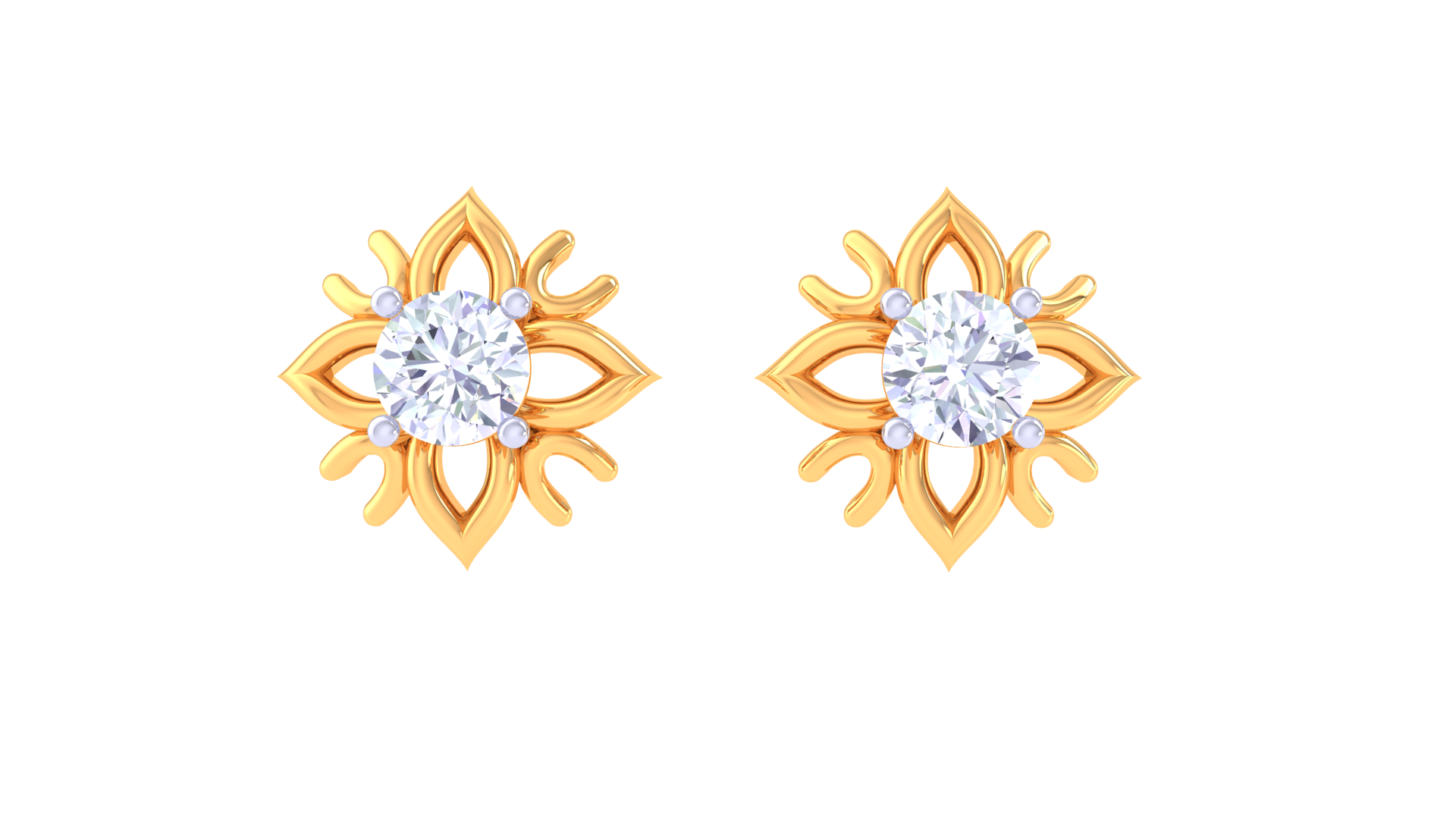 Radiating elegance and intricate craftsmanship, these floral-inspired stud earrings feature a brilliant 0.34 carat round-cut diamond at the center of each piece.