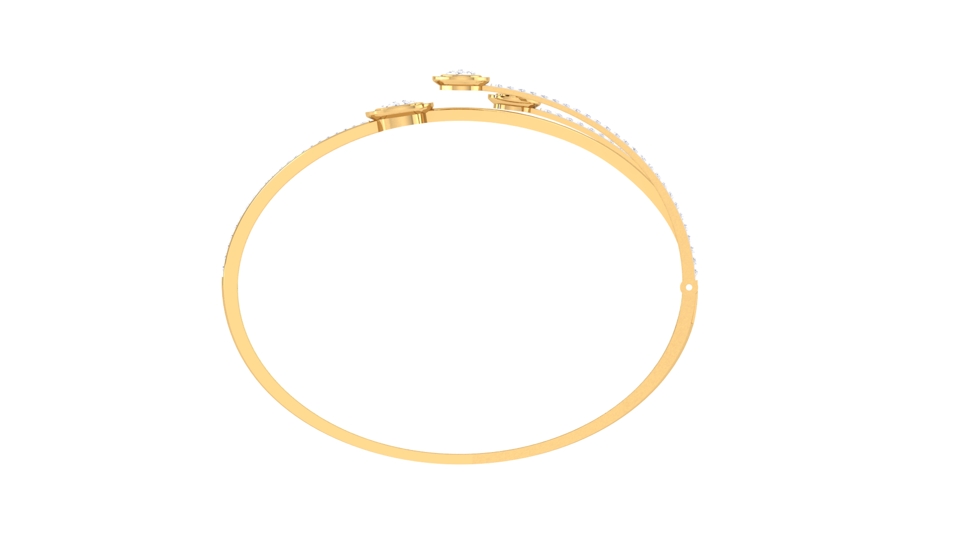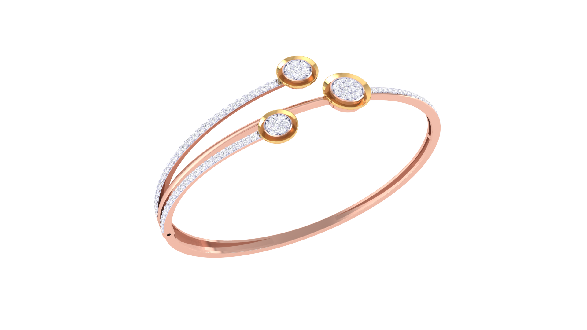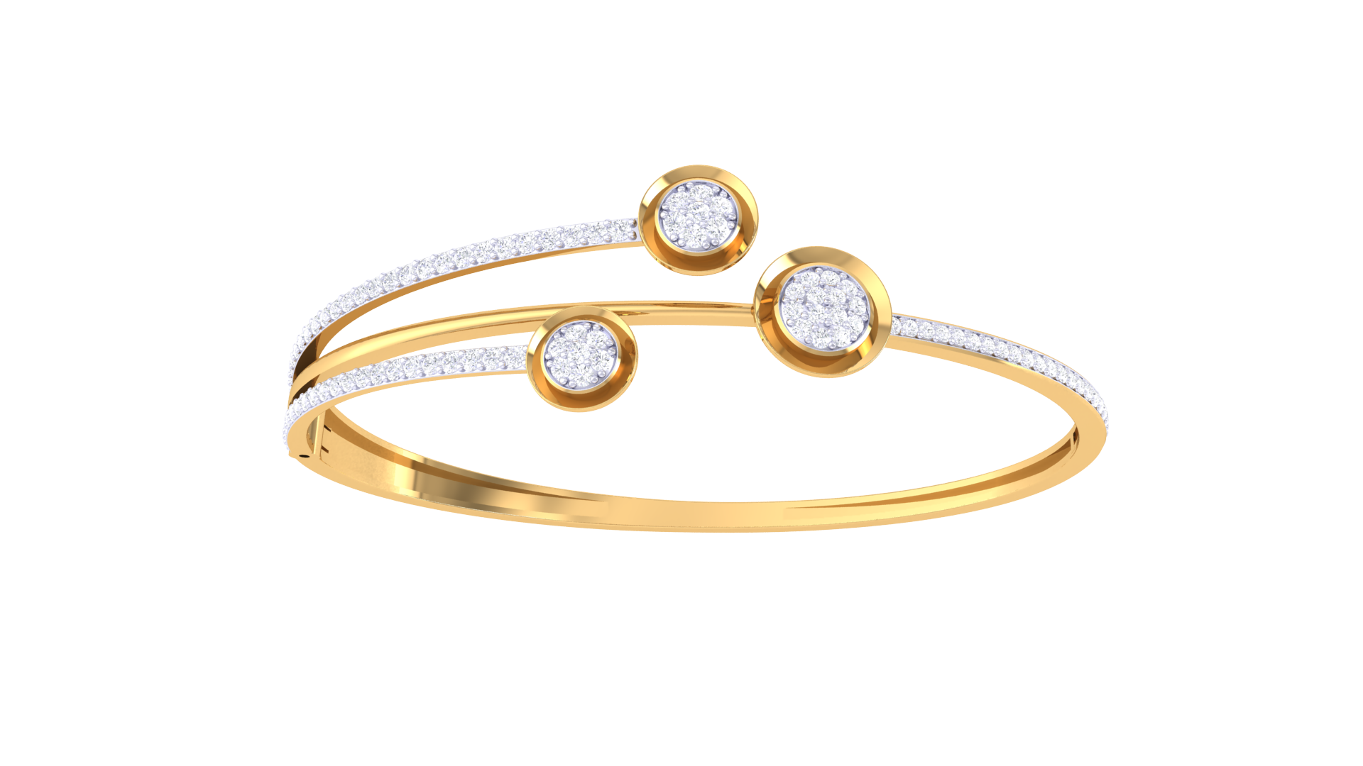 This exquisite bangle showcases a modern design featuring a 0.84 Ct diamond expertly set in triple bezel cluster settings.