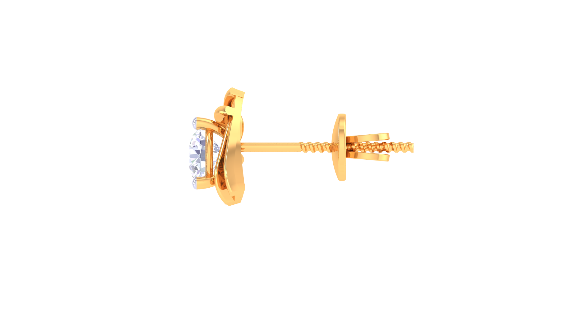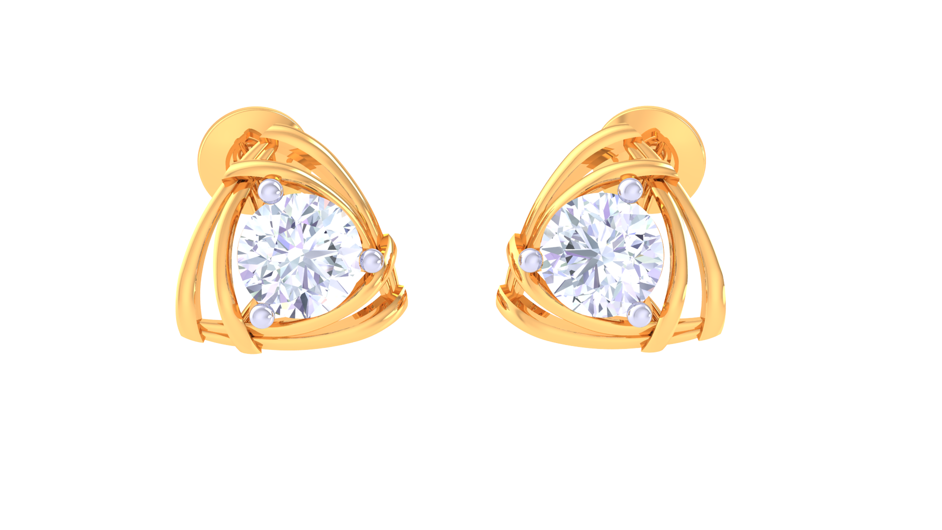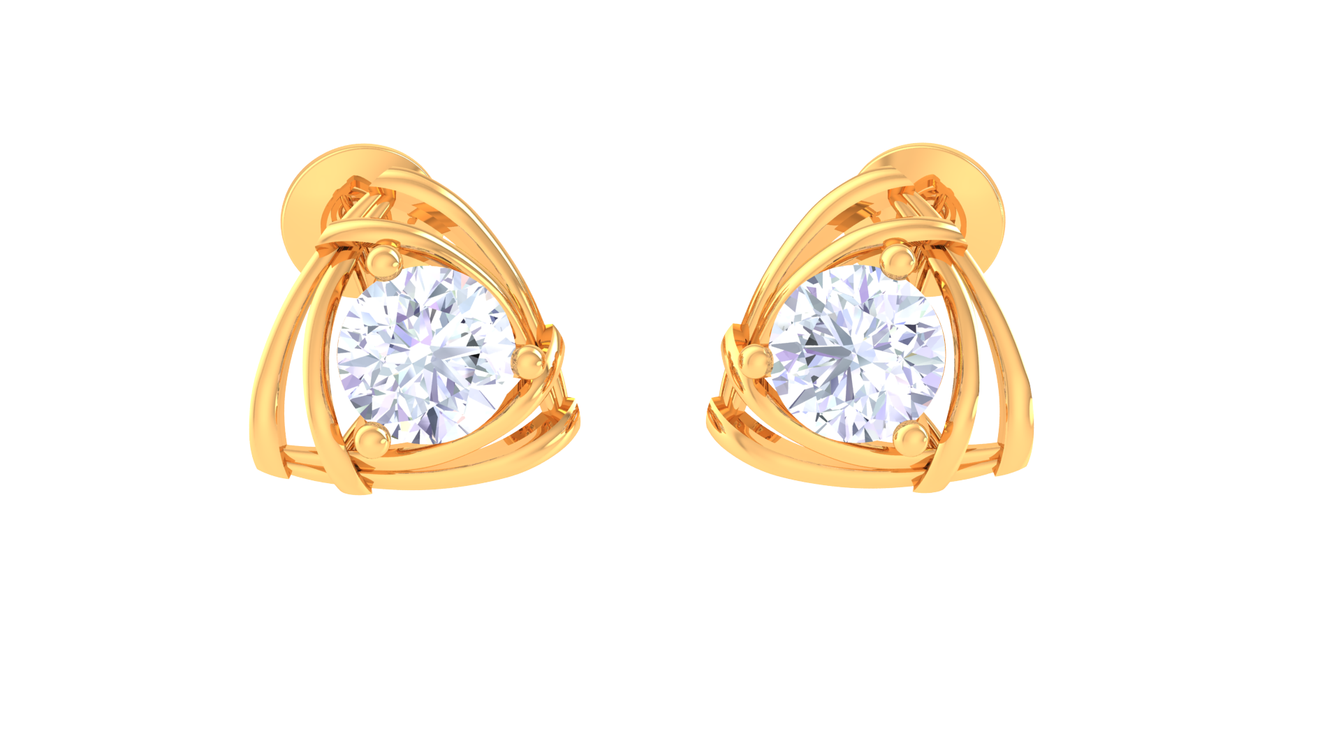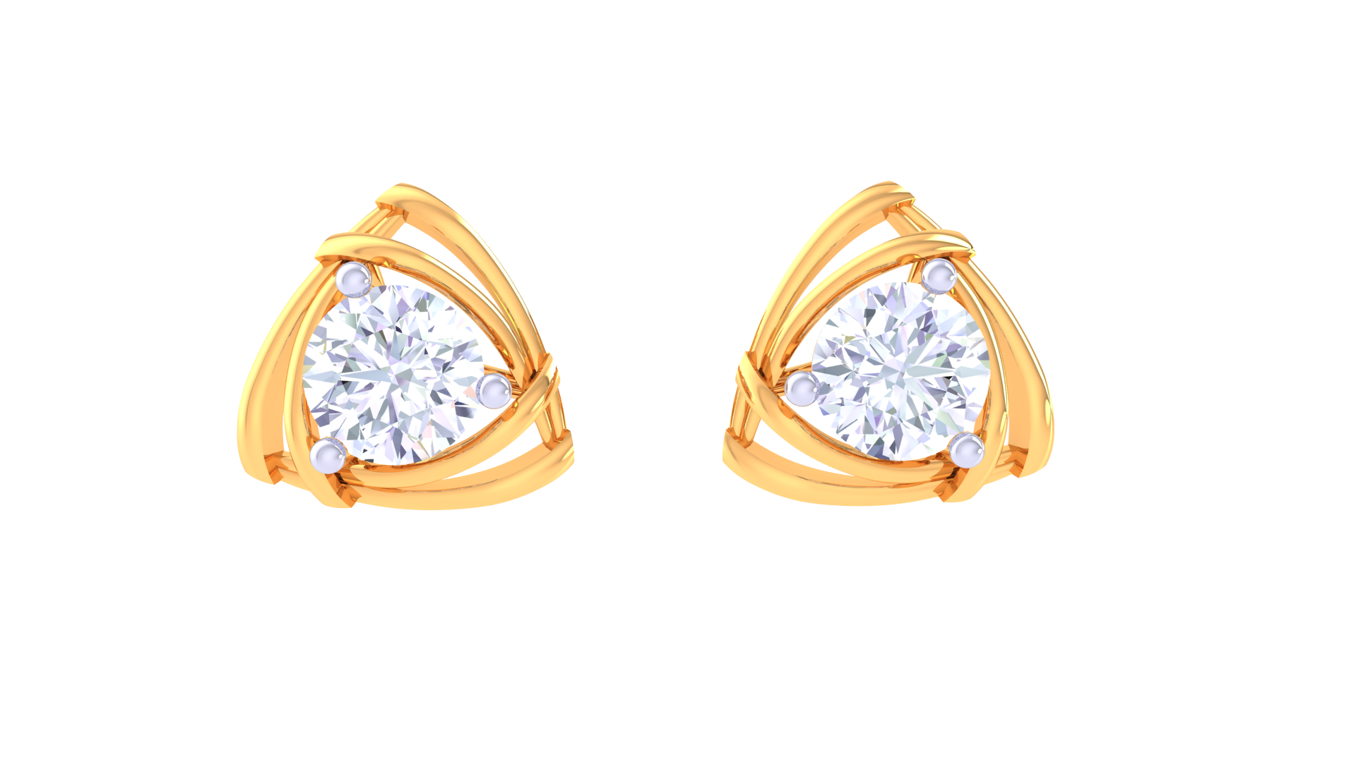 Gold Stud Earrings with Triangular Accent - 0.40 Ct