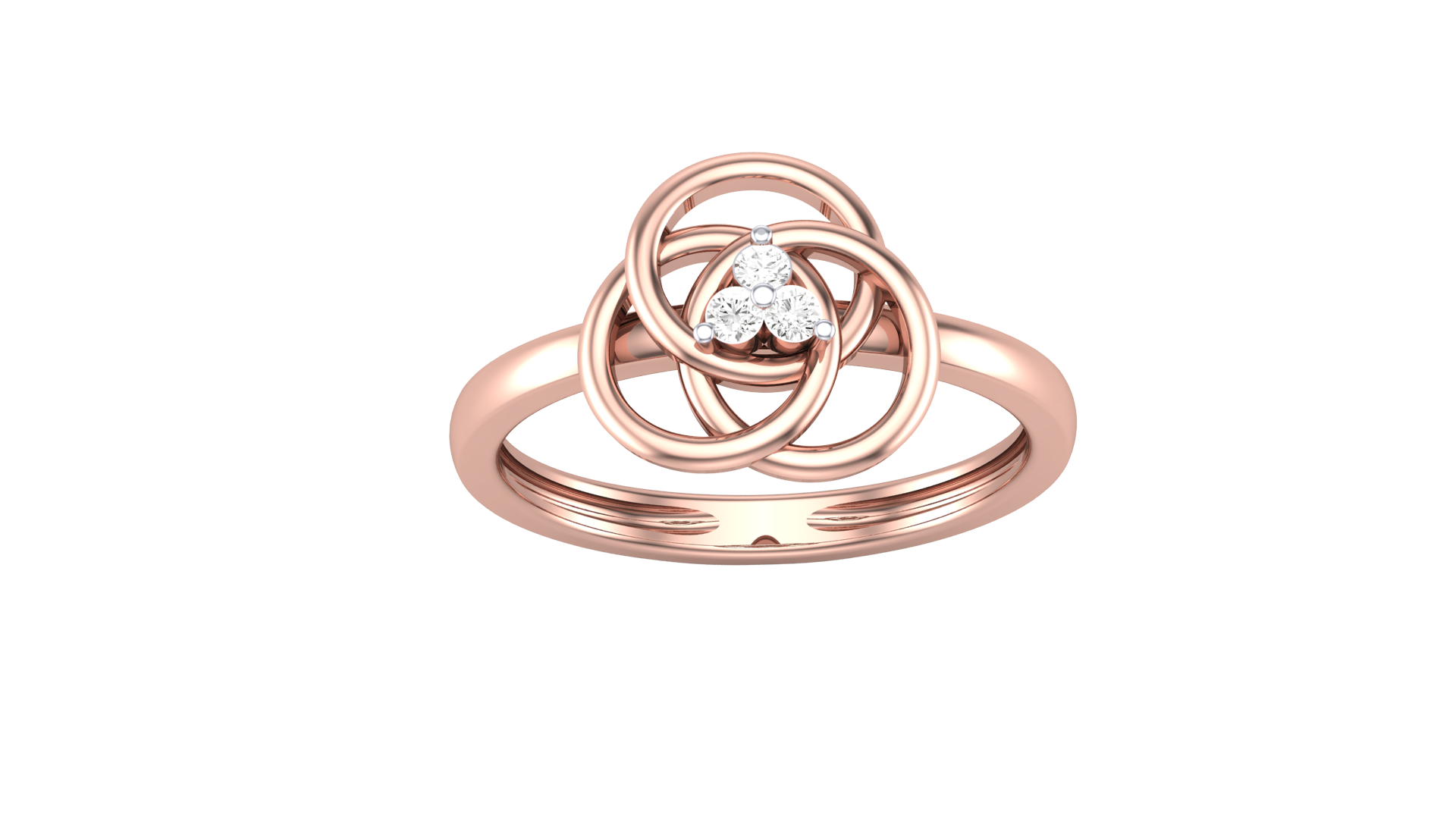 A graceful fusion of artistry and elegance, this rose gold ring is crafted from 2.27 grams of polished gold and adorned with a delicate 0.06 ct diamond trio.