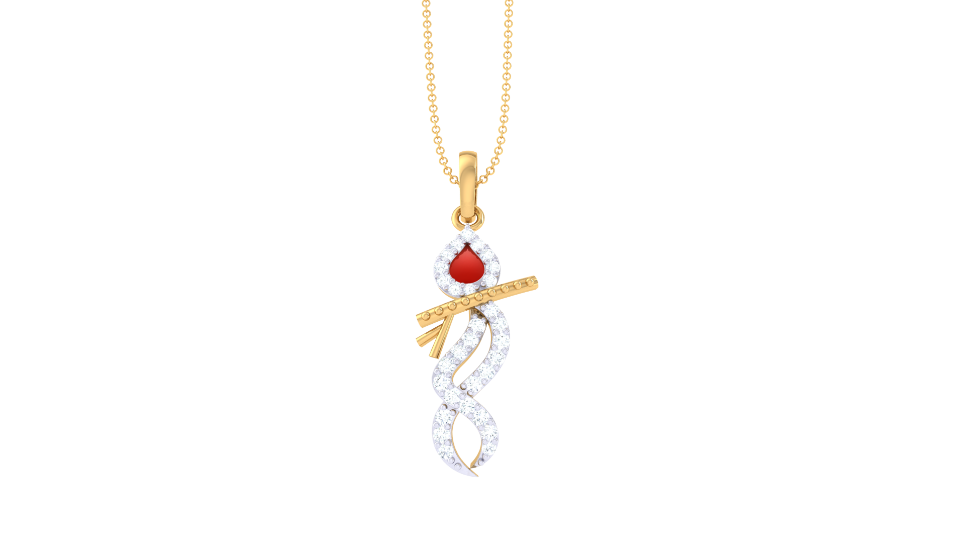 Shri Krishna Gold Pendent - 0.16 Ct Diamond Accents and Ruby Center