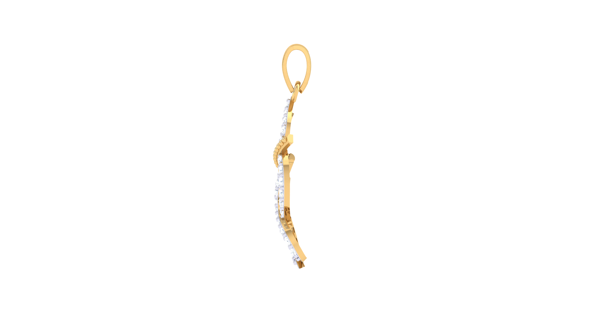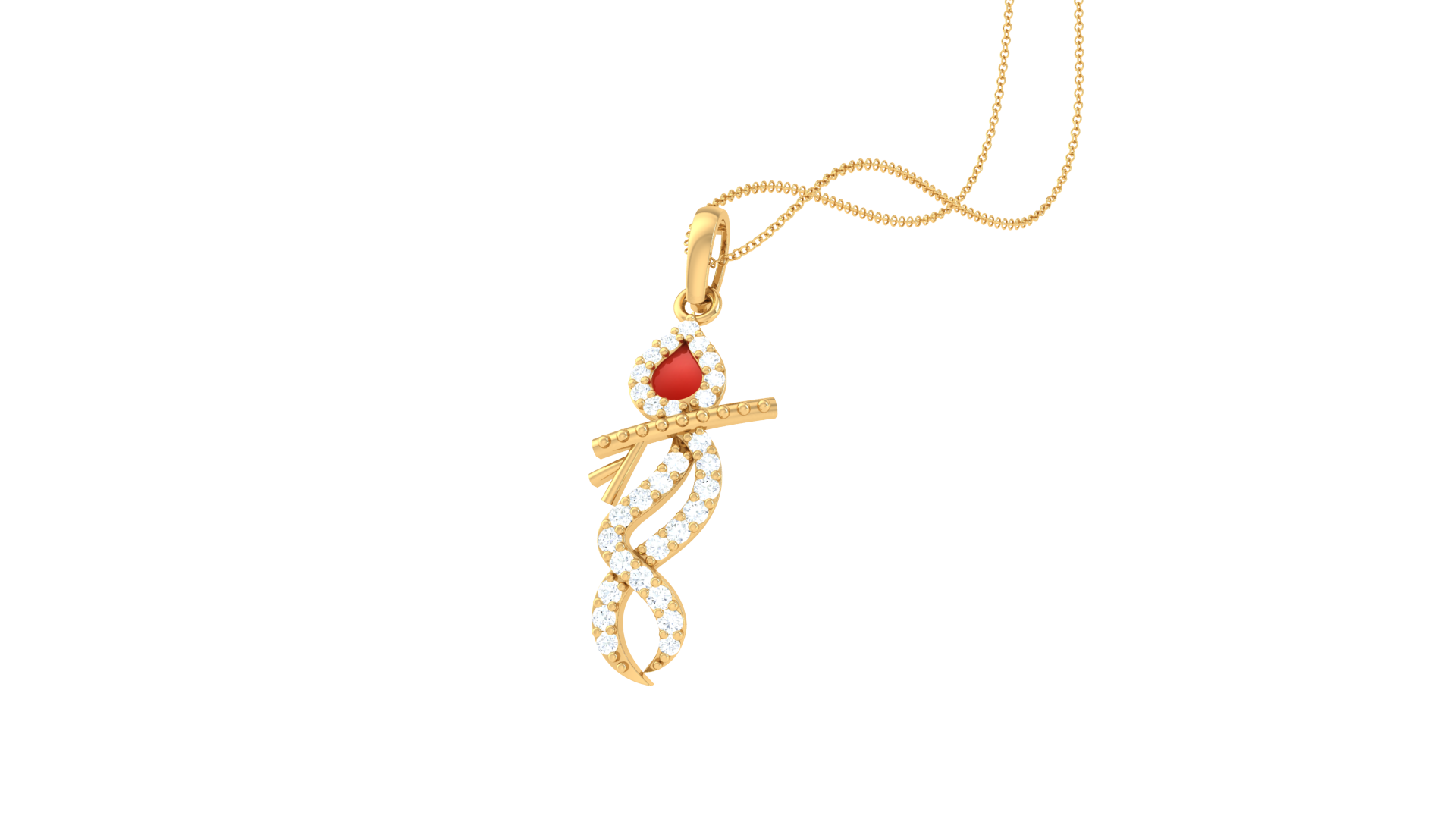 A symphony of curves and color, this pendant is crafted in 0.72 grams of radiant 18K gold and adorned with 0.16 carats of dazzling diamonds.