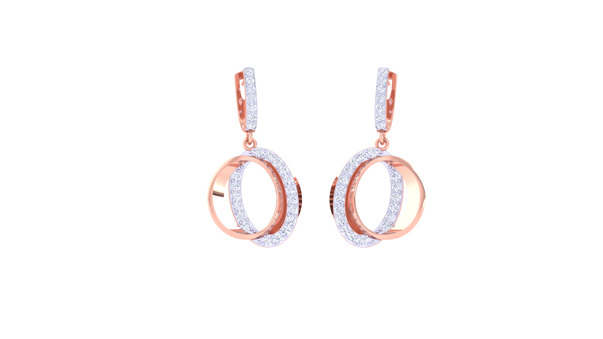 Crafted in 4.00 grams of radiant gold, these earrings showcase a striking interplay of dual interlocking ovals—one in gleaming yellow gold and the other in diamond-studded silver-toned brilliance.