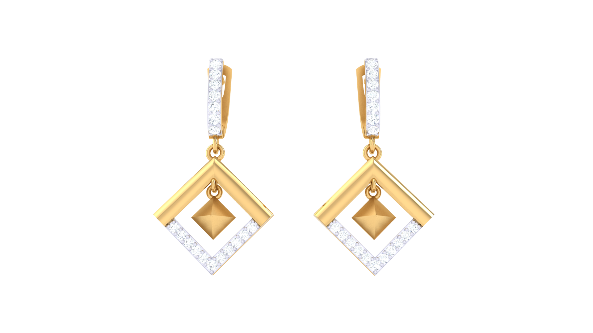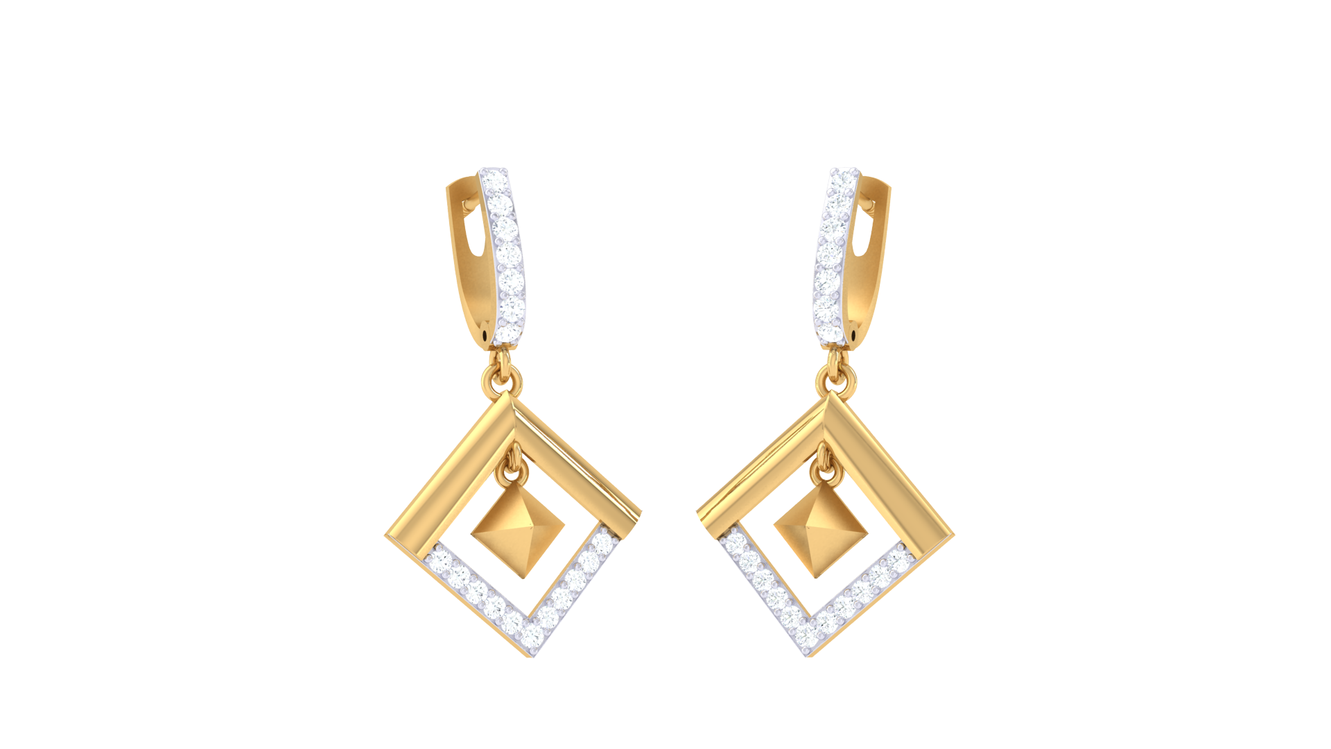 Modern elegance meets geometric artistry in these captivating drop earrings, crafted in 2.76 grams of radiant gold and adorned with 0.30 carats of sparkling diamonds.