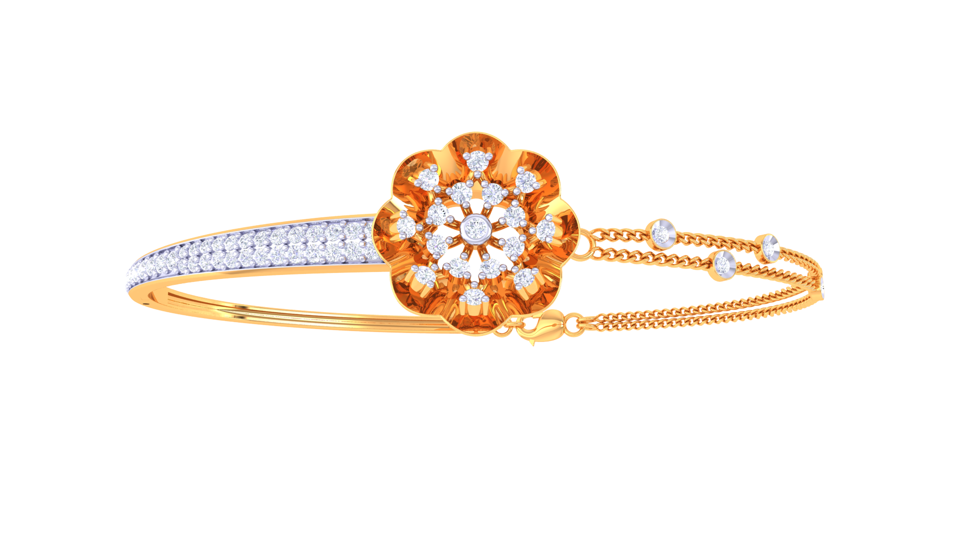 Bloomline Elegance Gold Bracelet With Dual-Band Floral Motif - 0.52 Ct Diamonds