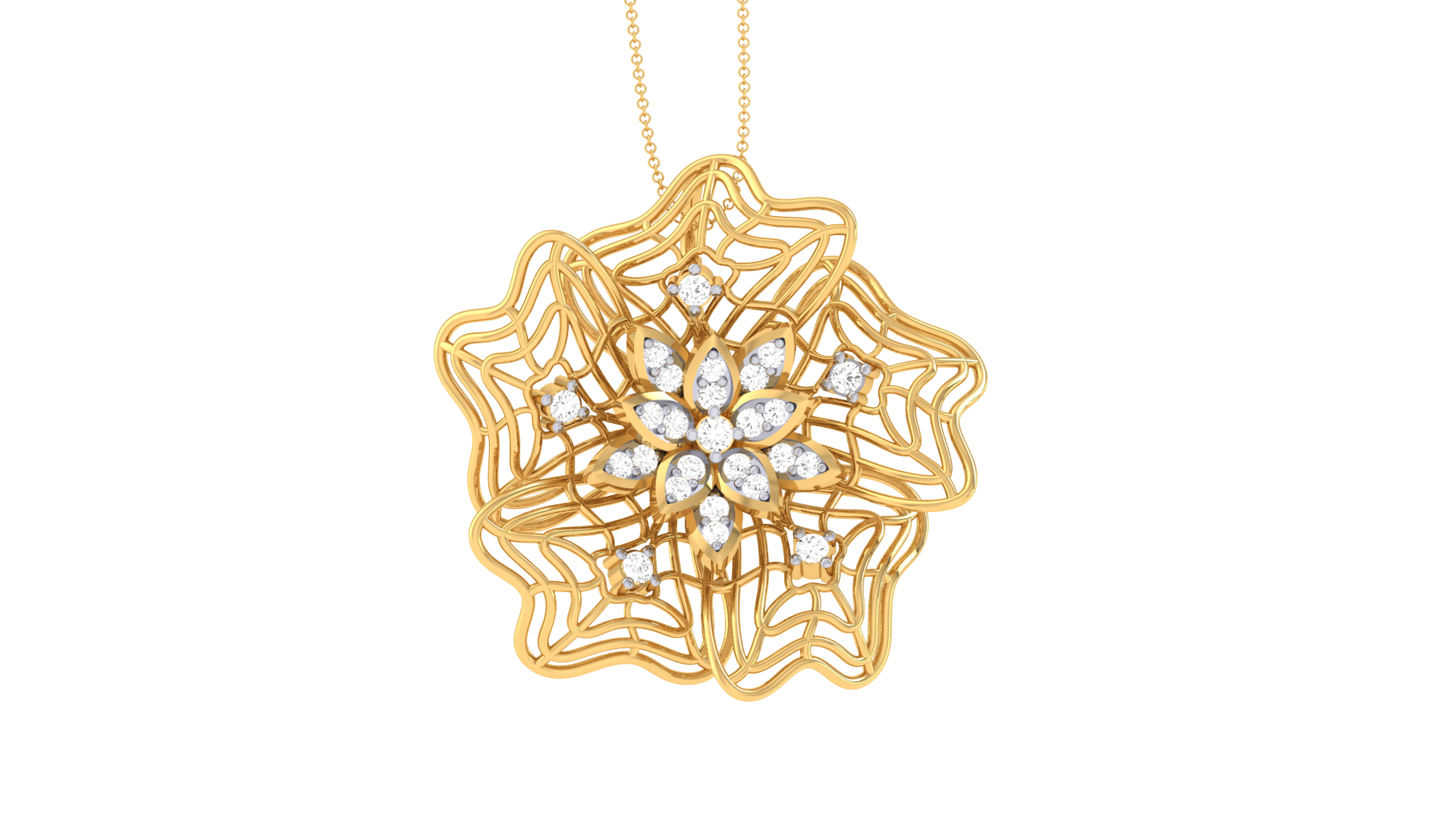 Golden Snowflake Pendant - 0.17 Ct Sparkling Diamonds