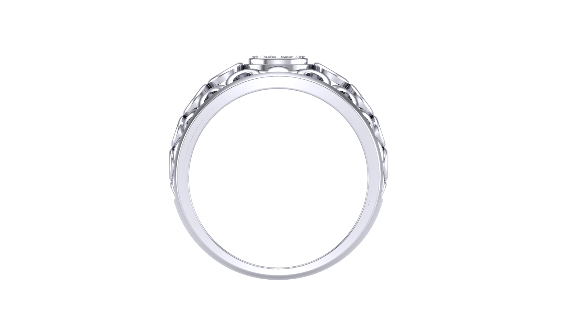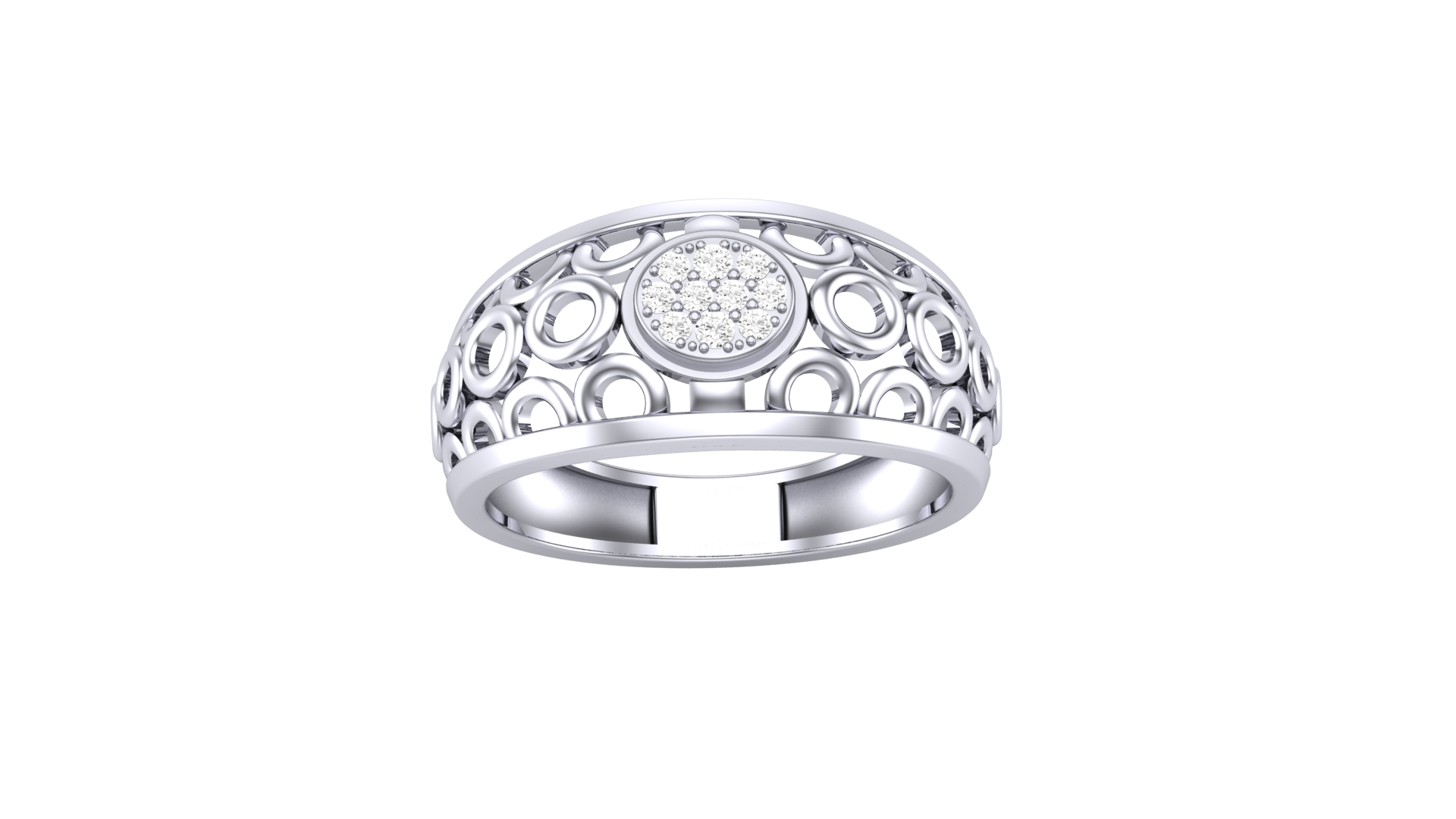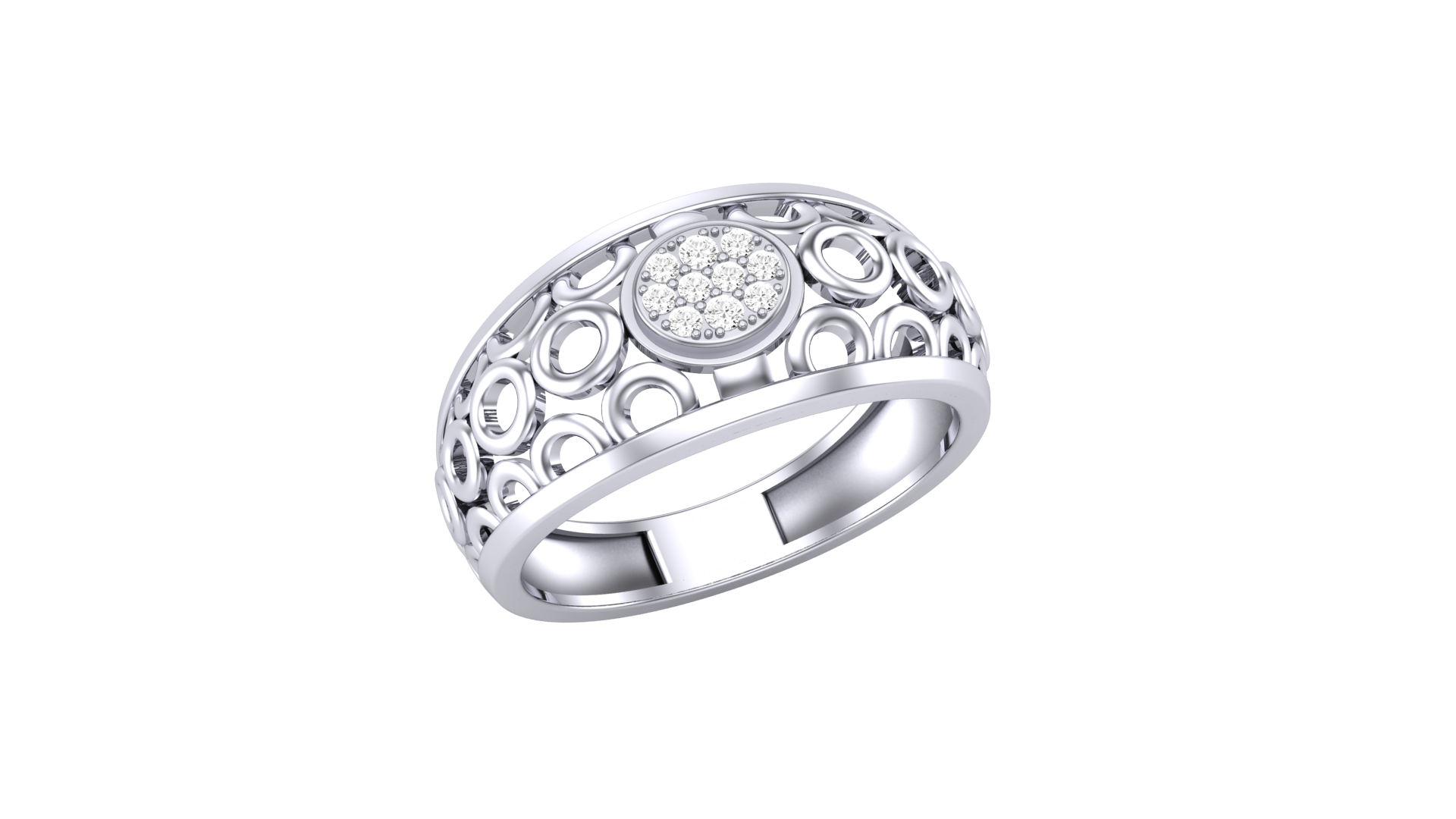 A symphony of geometry and sparkle, this silver ring is crafted from 2.85 grams of lustrous gold and crowned with a 0.07 ct diamond cluster.