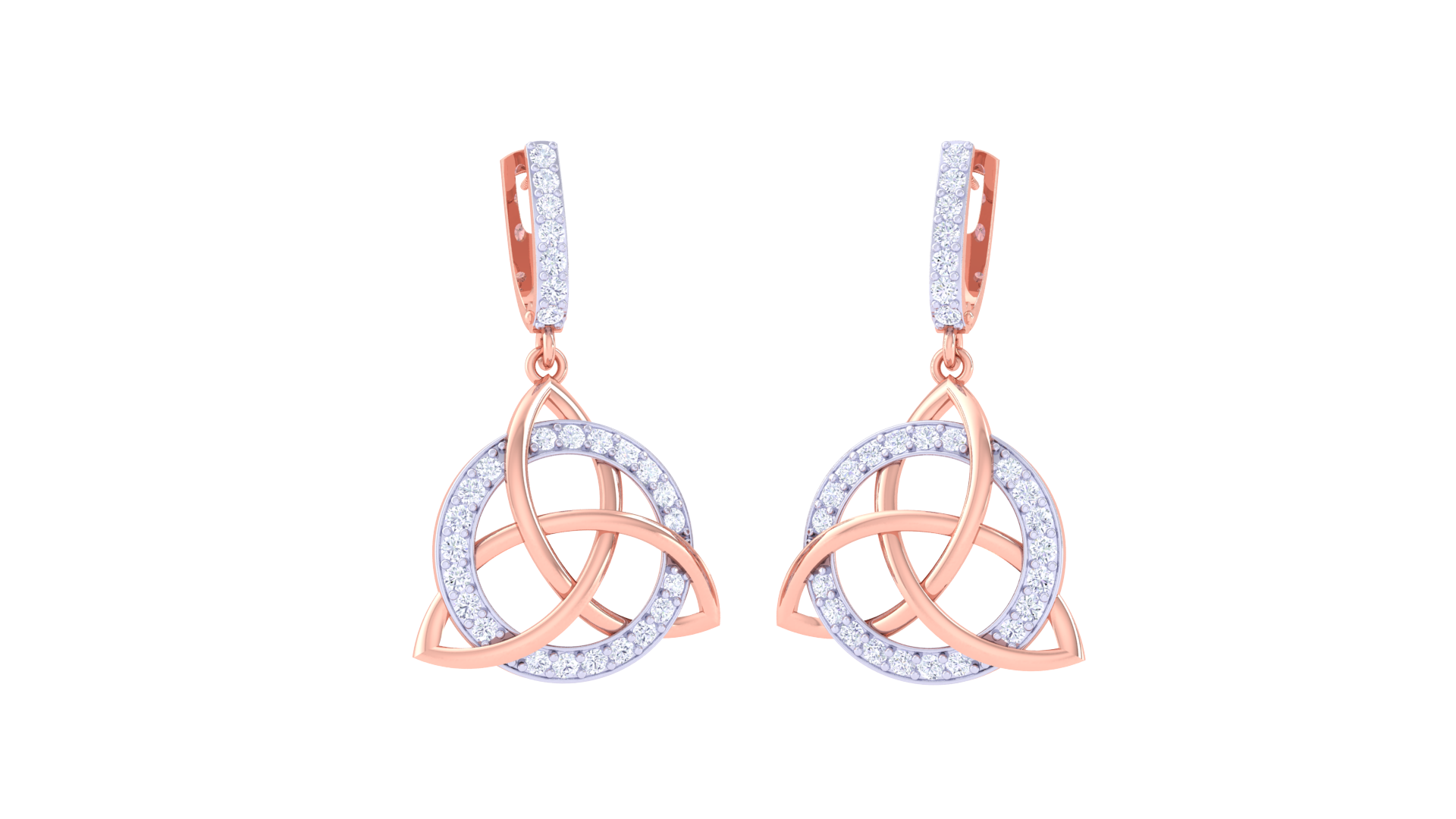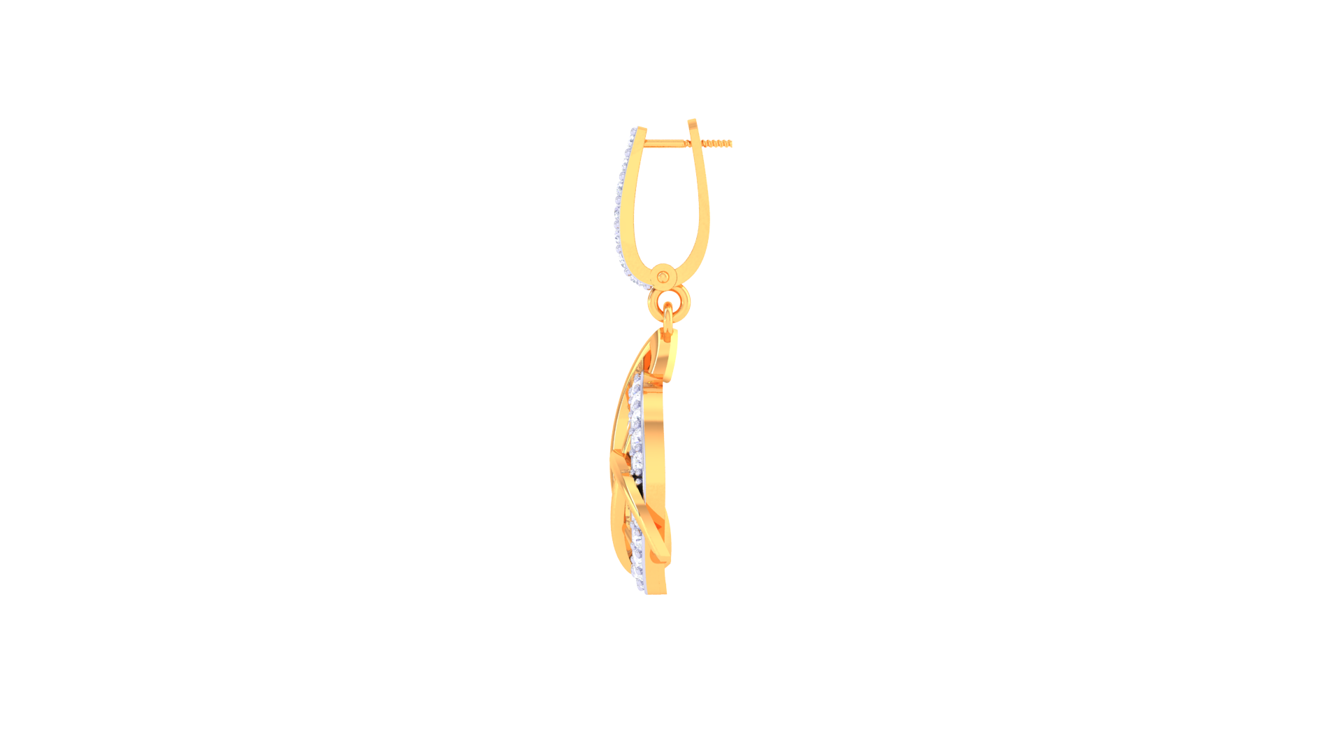 A vertical bar of pavé-set stones adds a graceful drop effect, enhancing the earrings’ movement and sparkle.