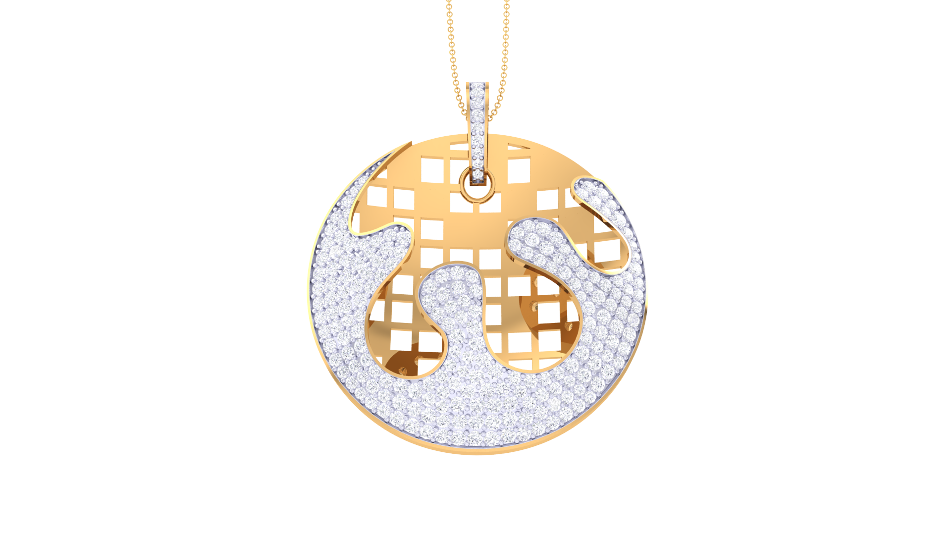Woven Earth Pendent In Gold - 2.04 Ct Round Cut Diamonds