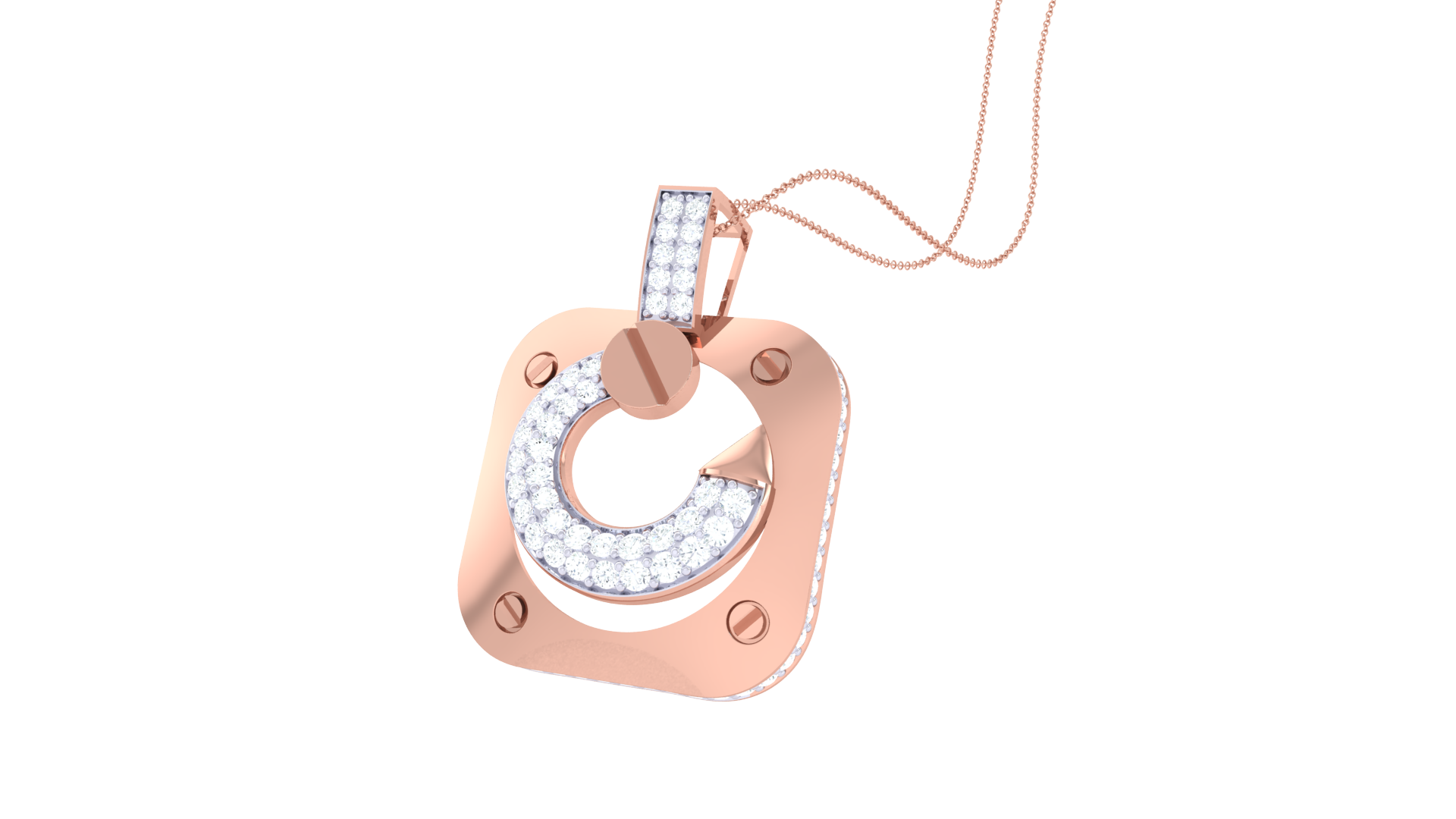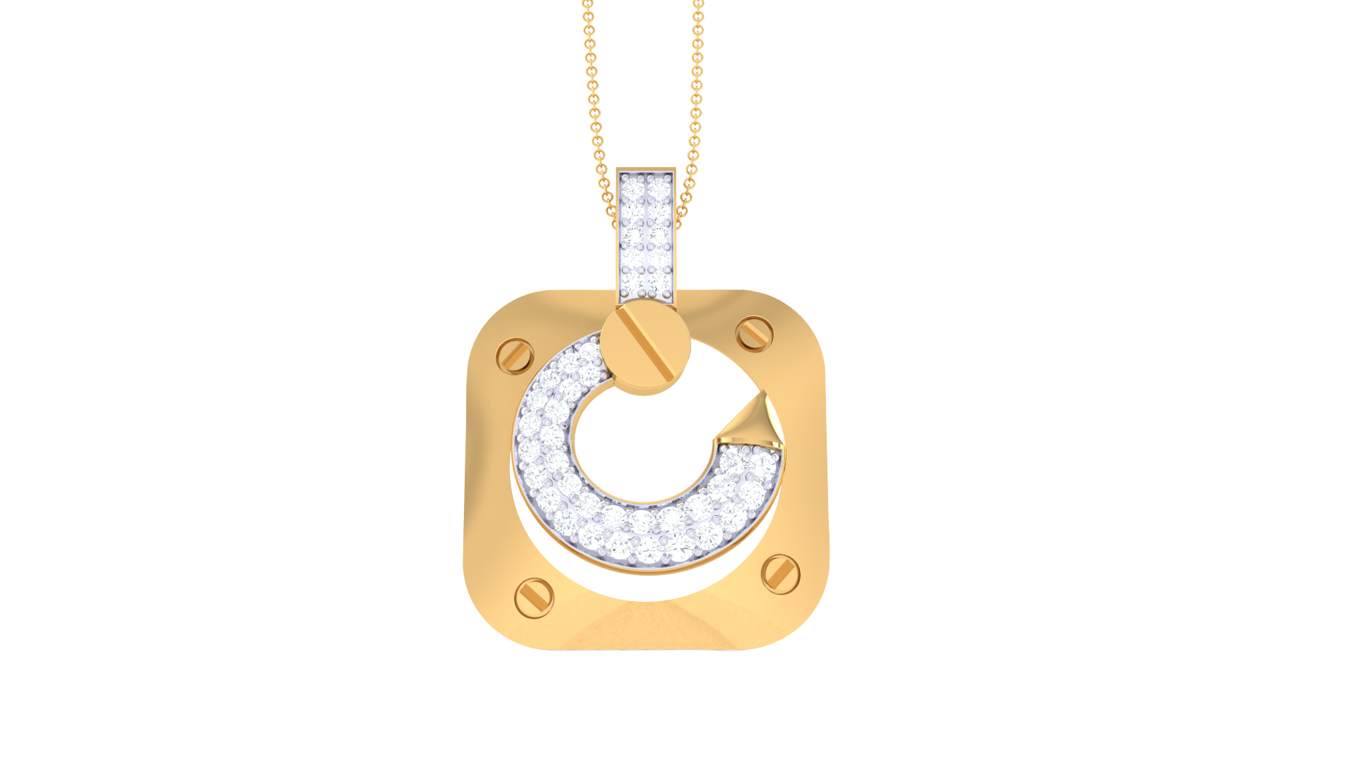 A diamond-set bail completes the design, making this piece a luxurious fusion of geometry and craftsmanship.
