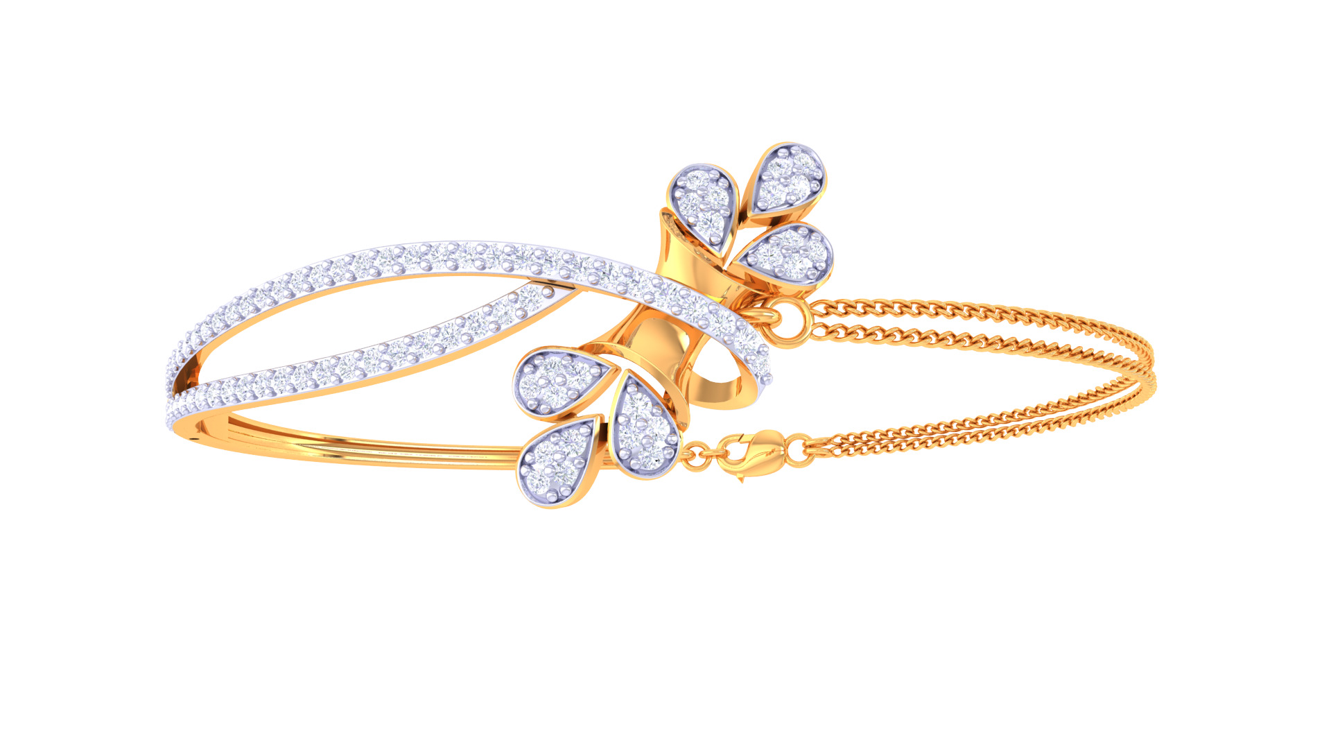 Floral Radiance Dual Band Gold Bracelet - 0.72 Ct Hand Set Diamonds