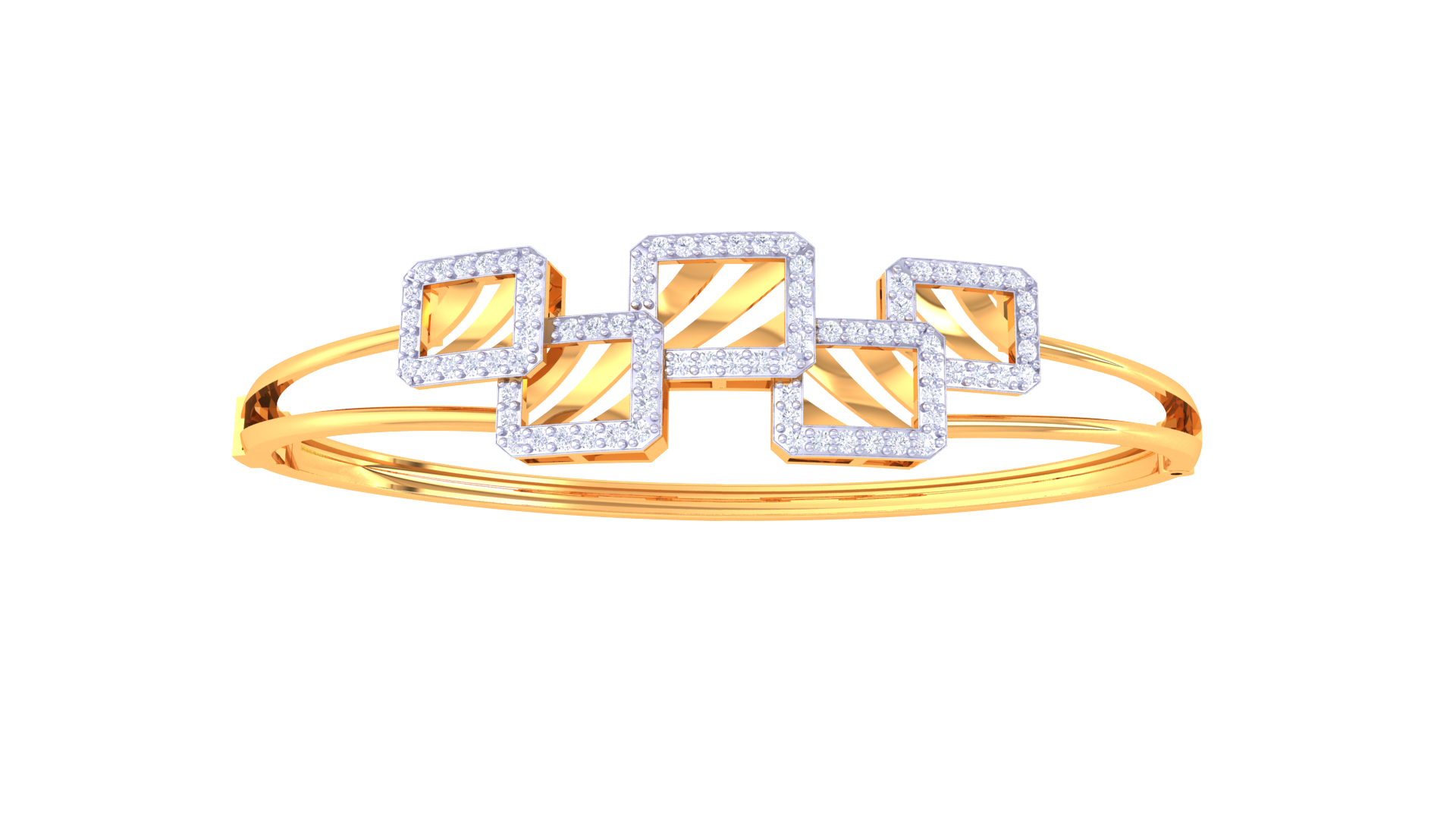 Geometric Elegance Dual-Band Gold Bracelet - 0.65 Ct Sculptural Diamond