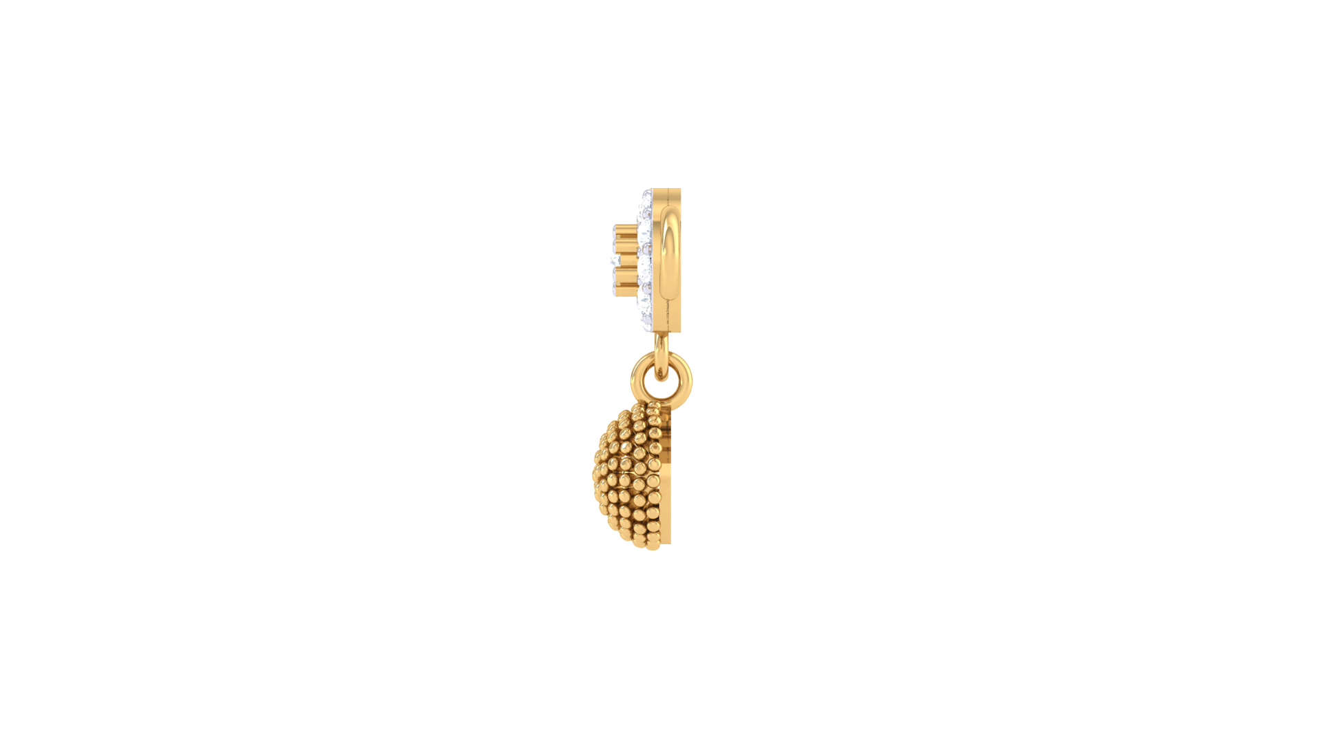Suspended from the gold disc is a textured spherical drop, adding movement and charm.