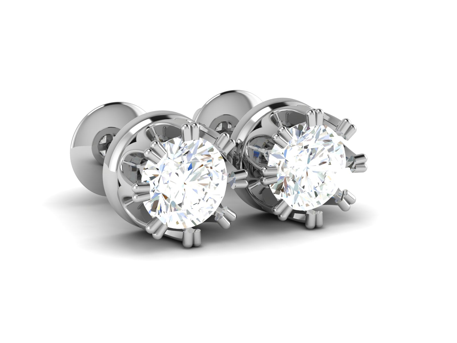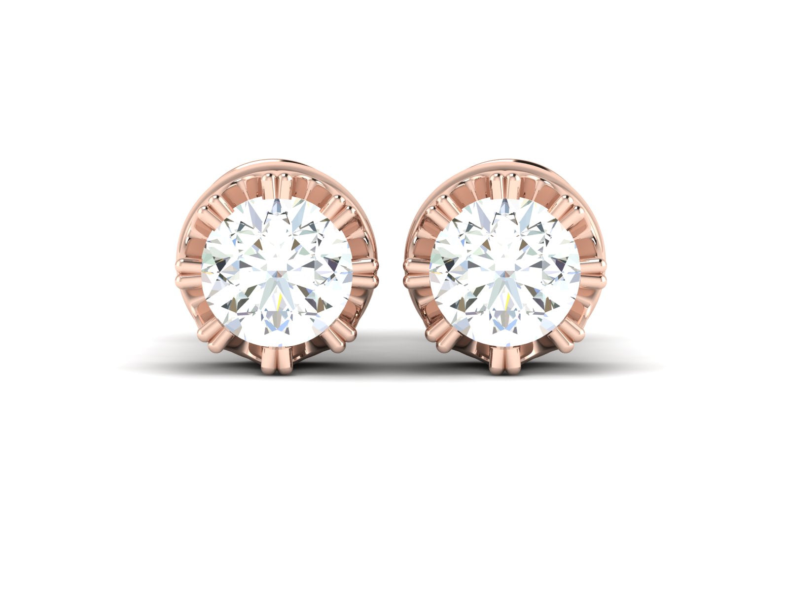 Gold Double Halo Diamond Stud Earrings - 0.47 Ct Round Brilliant Cut