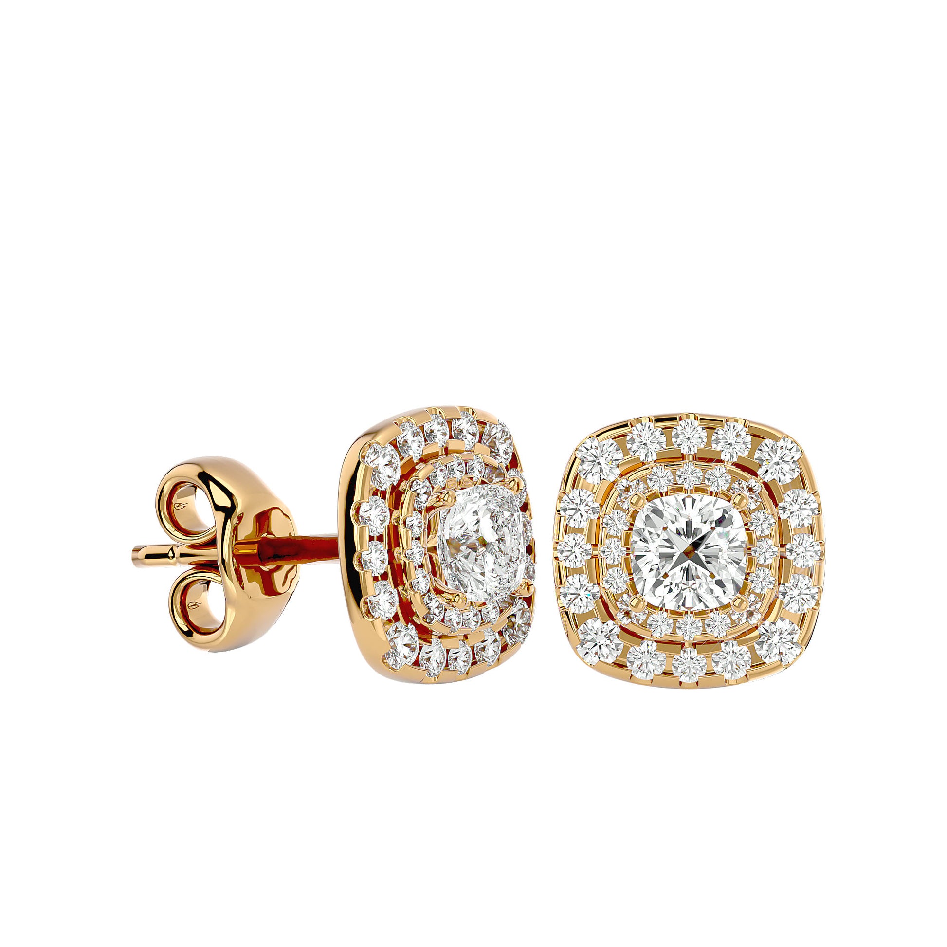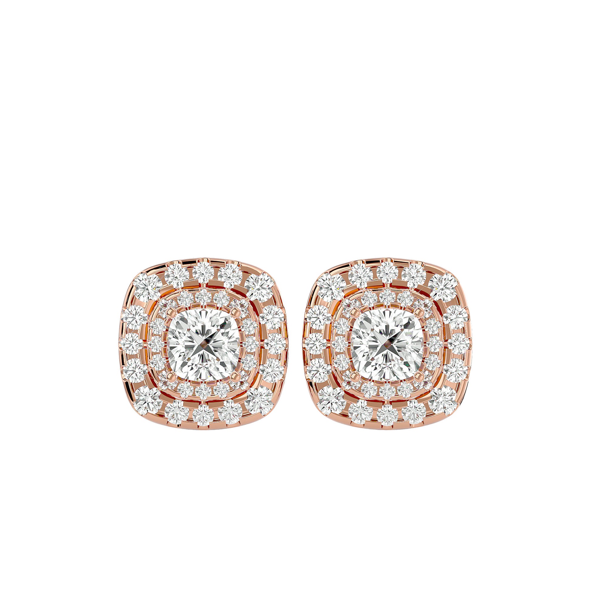 Featuring 2.20 carats of cushion-shaped diamonds elegantly set within a double halo, they offer exceptional brilliance and timeless appeal.