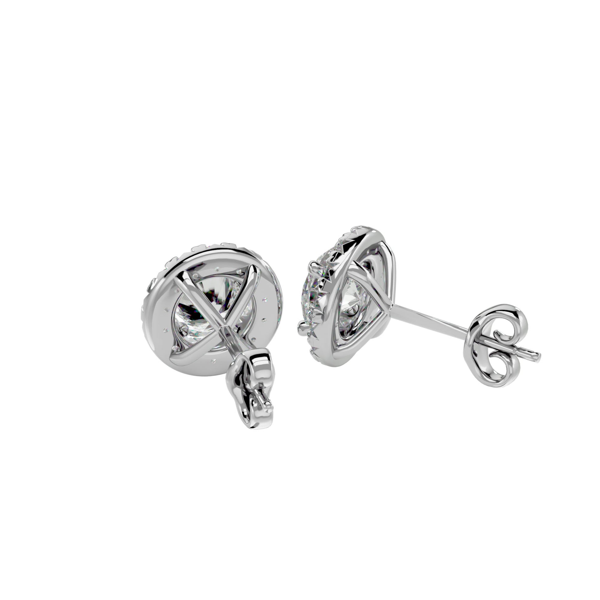 Starlight Edge Round Halo Stud Earrings In Yellow Gold - 0.99 Ct Round Brilliant Cut Diamonds