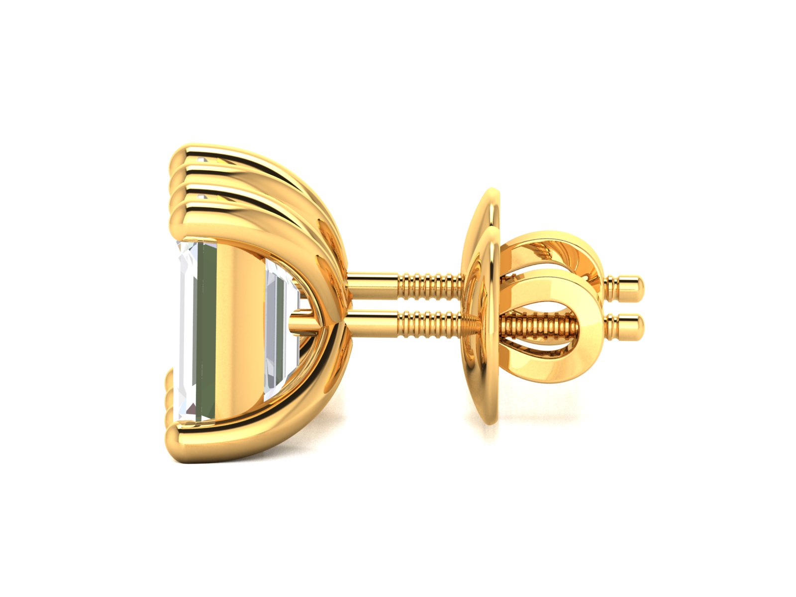 These gold double halo earrings feature a total gold weight of 13.56 grams and showcase 0.87 carats of emerald-shaped diamonds, harmoniously blending timeless elegance with refined brilliance.