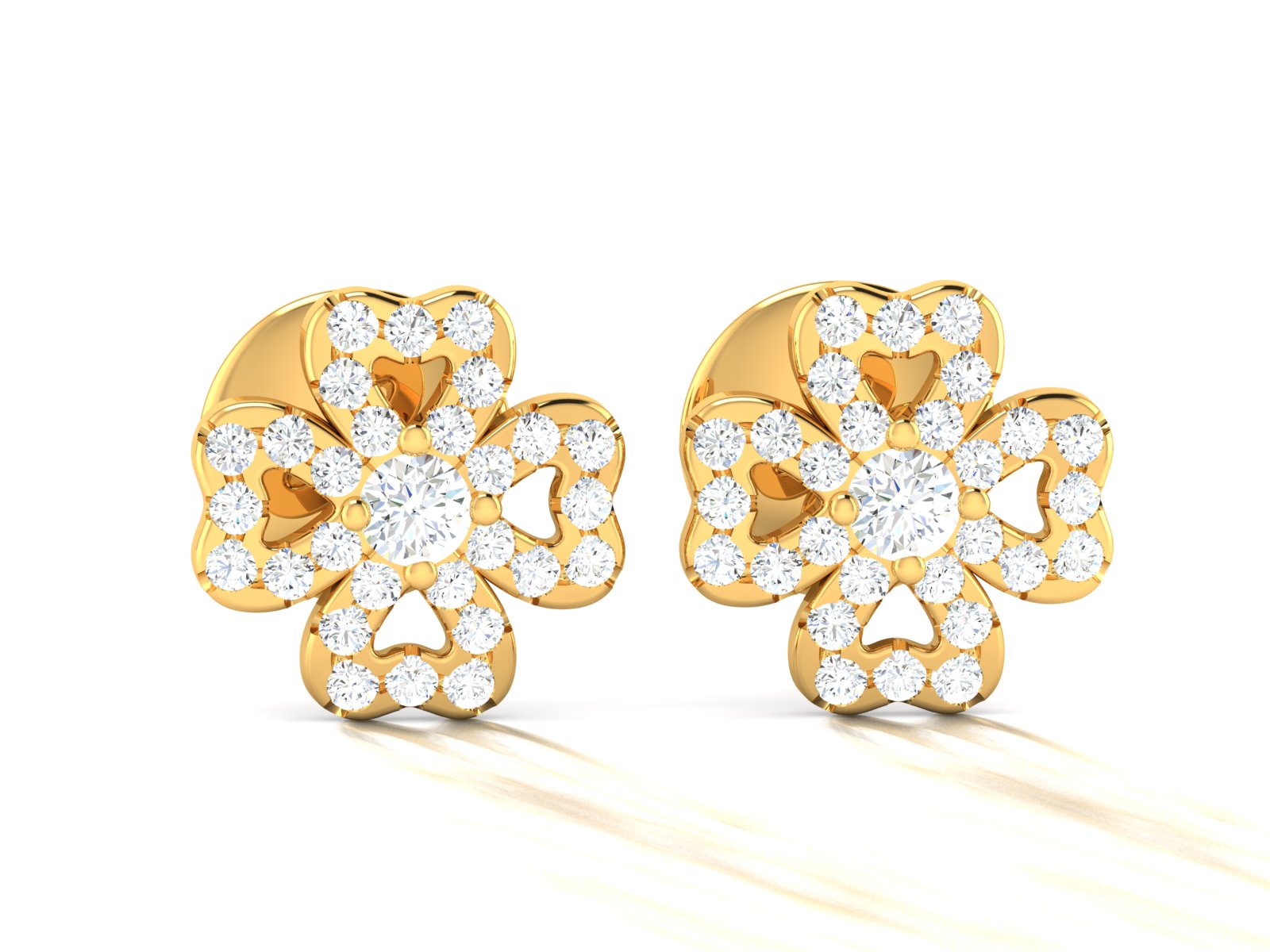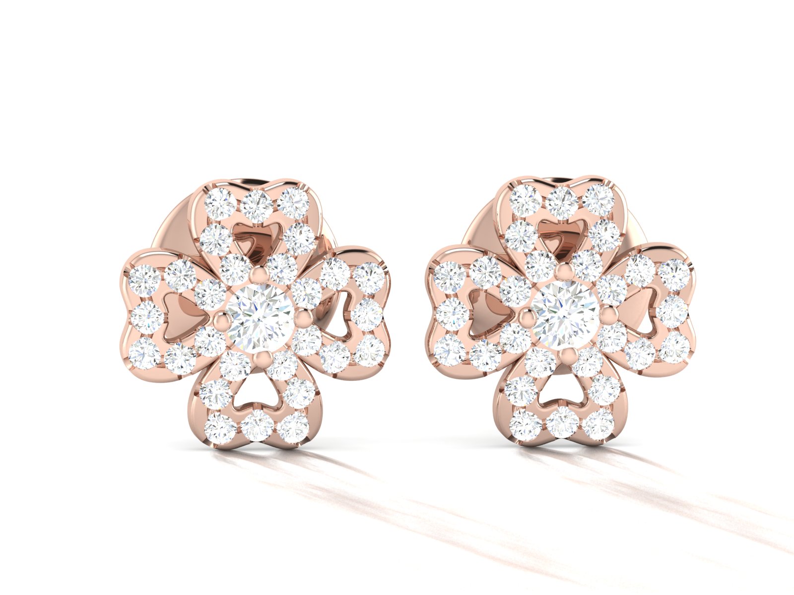 Floral Sparkle Diamond Stud Earrings In Rose gold - 0.86 Ct Round Brilliant Cut Diamonds
