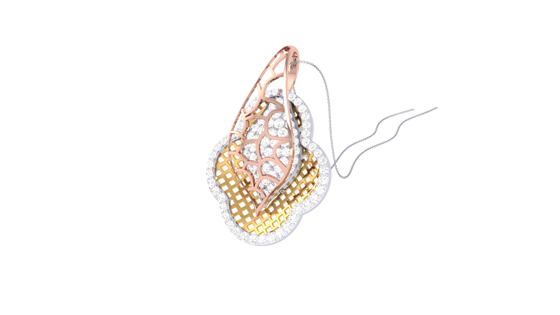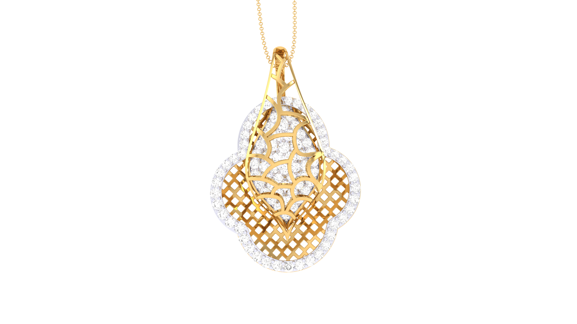 Floral Lattice Clover Pendant In Gold - 0.82 Ct Brilliant Cut Diamonds