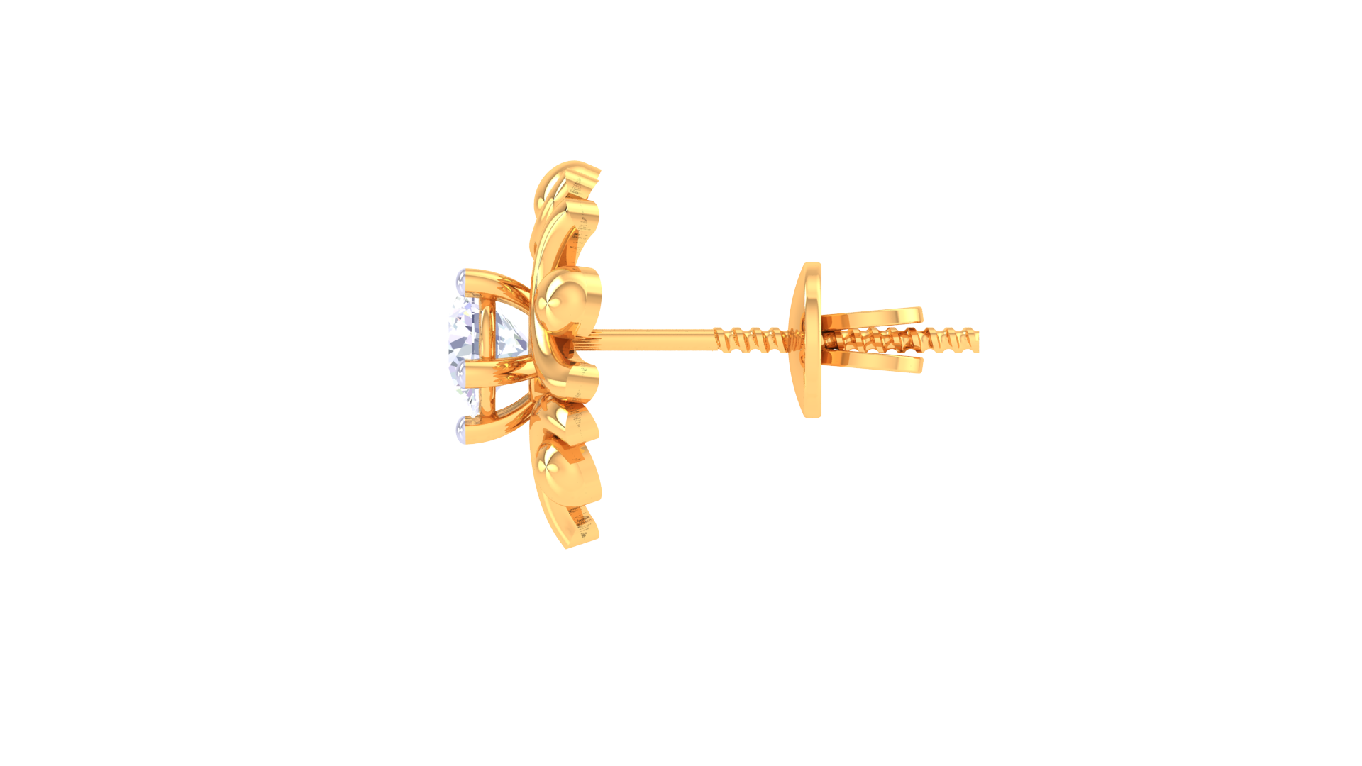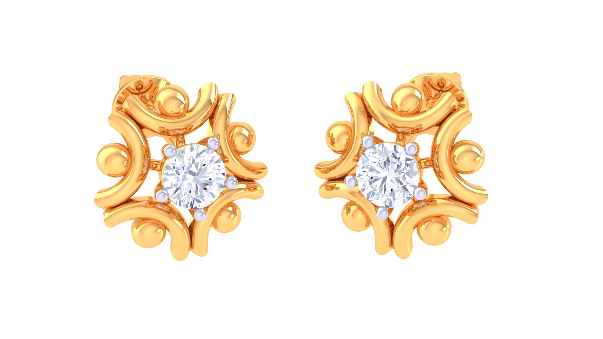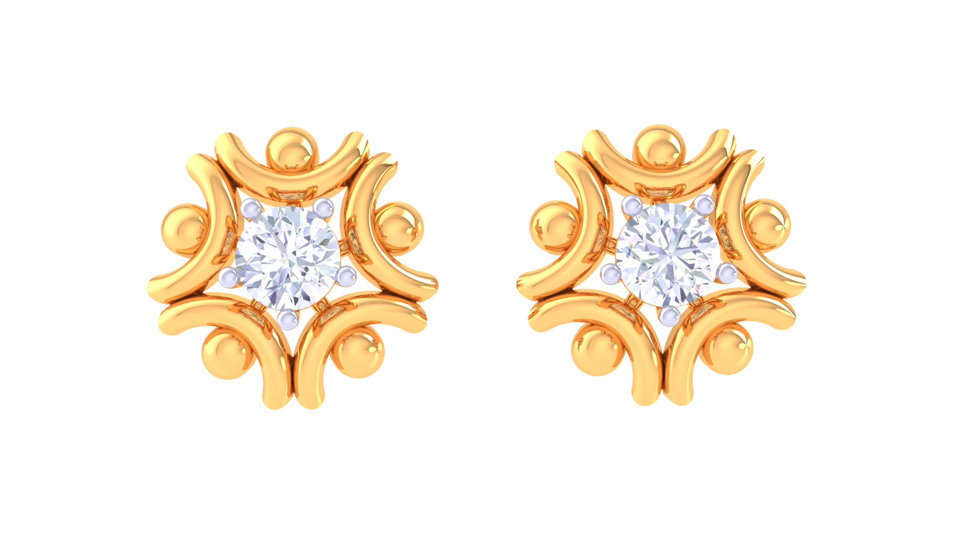 Radiant Sparkle Diamond Ornate Gold Stud Earrings - 0.38 Ct