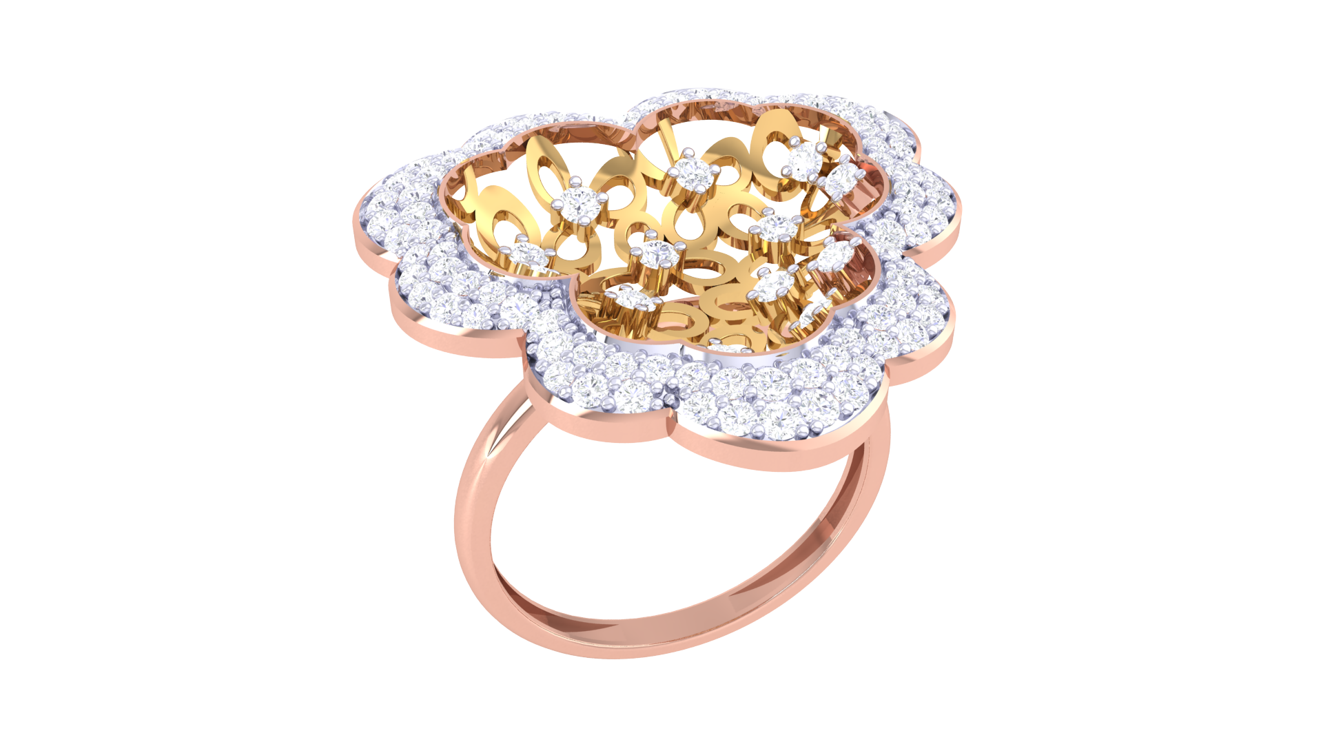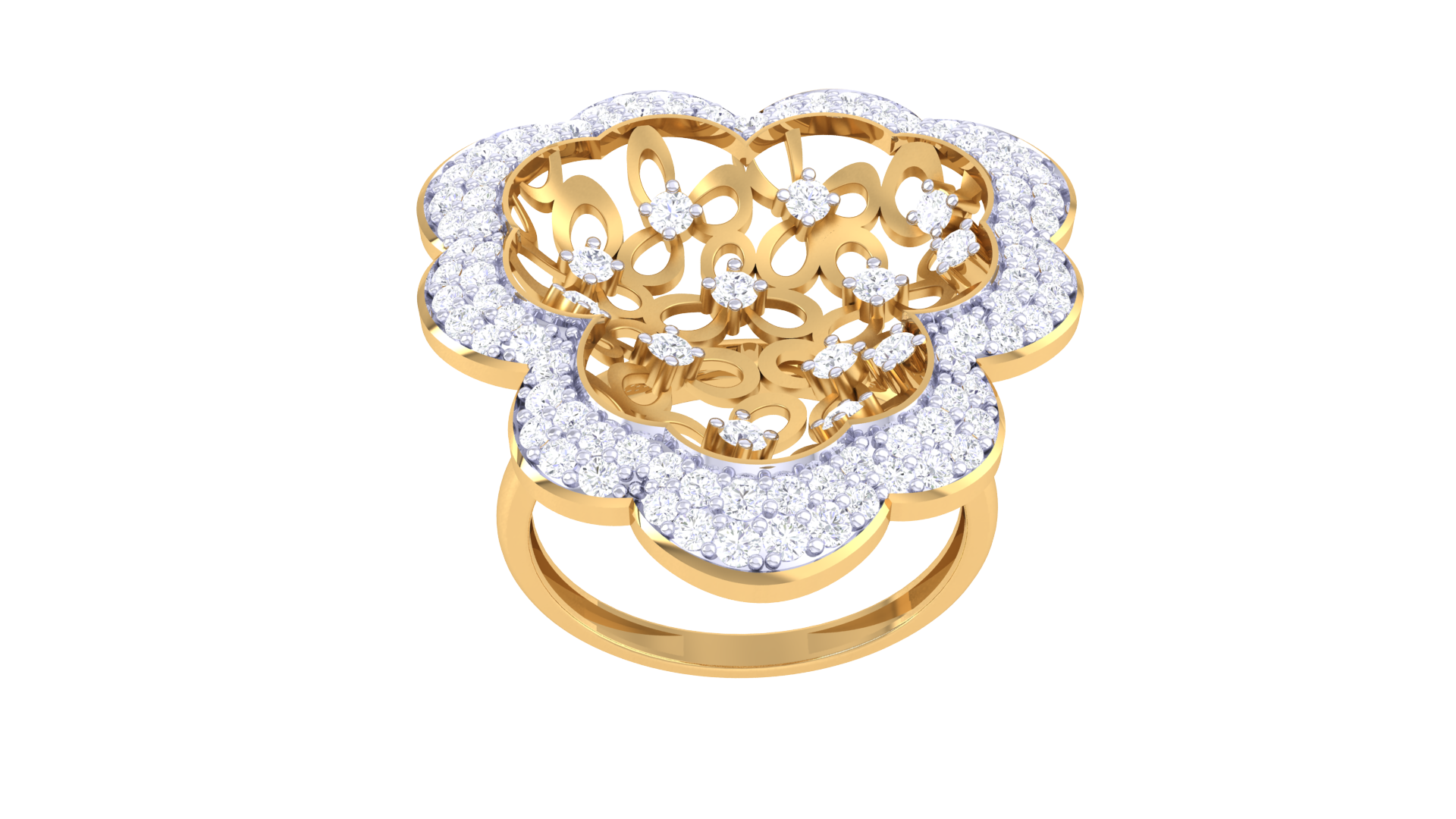 Eclat Ornate Floral Halo Ring in Gold – 0.67 ct Diamond Petal Radiance